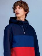 PIEZAS CLAVE Como un tributo al legendario año en que René Lacoste y los Mosqueteros ganaron la copa Davis contra Estados Unidos, una Polo con mini piqué elástico lleva la insignia “L FRA - 27” y está decorada con una banda naranja en el cuello. Otra de las firmas fuertes es un alfabeto multicolor que juega sobre la pluralidad de sus letras para deletrear la palabra LACOSTE; o roba vocales sobre la playera, una Polo, una sudadera o un suéter, mientras que la abstracción geométrica creada por franjas de colores vibrantes dibuja bandas bien definidas en una sudadera-jersey con capucha de doble cara o resalta la parte superior de una Polo.