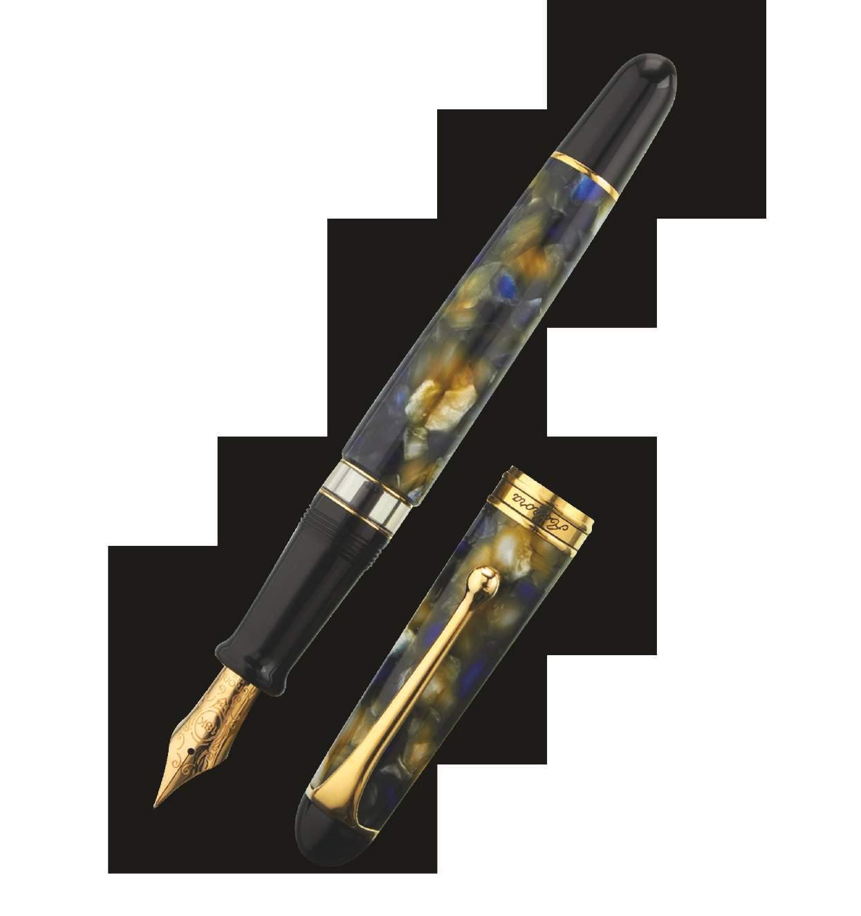 AURORA continúa su viaje a través del Sistema Solar inspirada por el esplendor de los planetas. Esta vez, la búsqueda de la belleza nos ha llevado hasta Saturno, Pluma estilográfica con capuchón y barril en azul marino nacré auroloide, adornos chapados en oro y punta de oro macizo de 18 kt, AURORA saturno está limitada a 888 piezas numeradas.