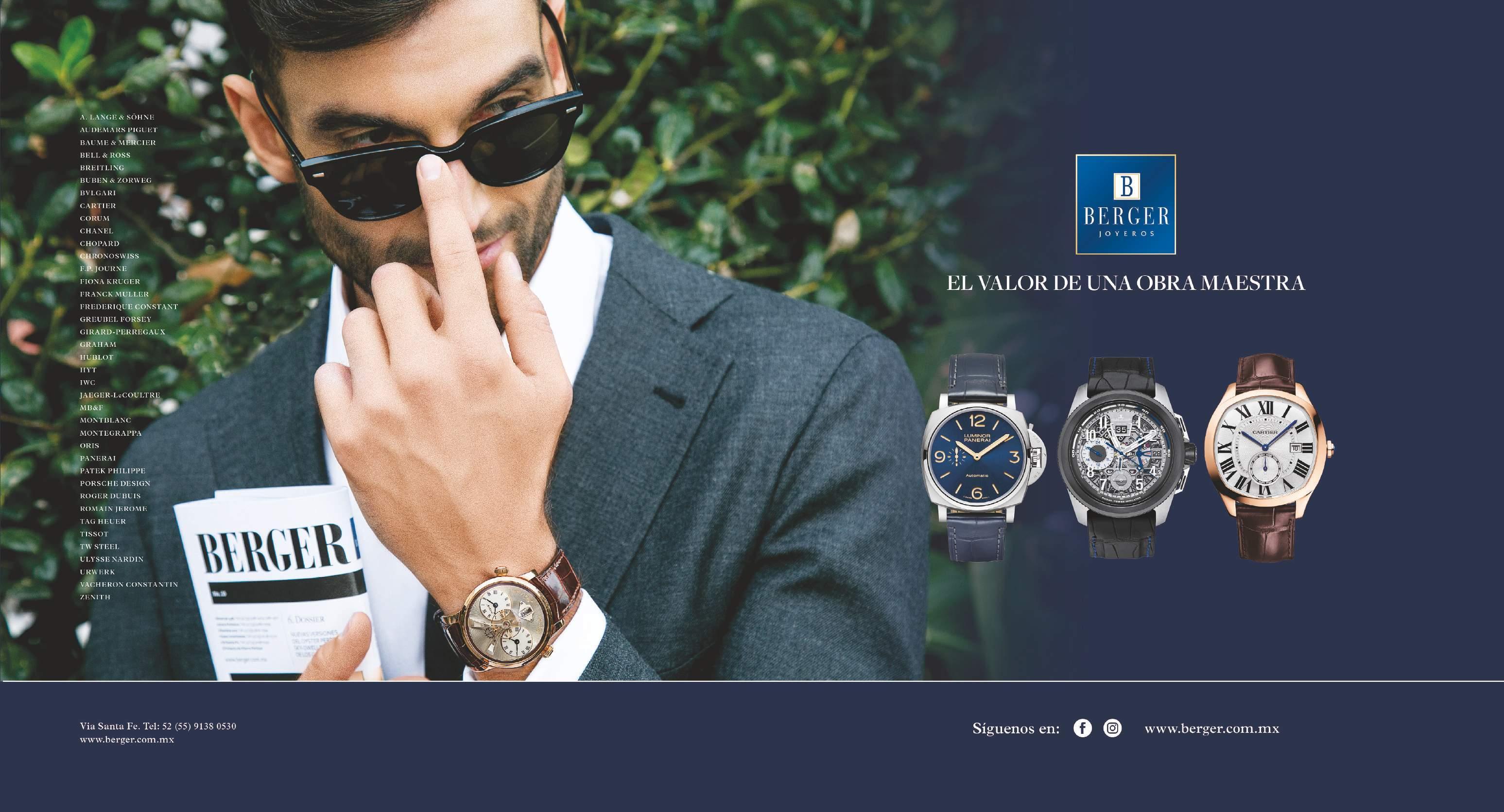 Berger Joyeros presenta nuevas colecciones a vísperas de la celebración de sus 100 años. En el 2019 Berger Joyeros cumplirá un siglo de vida. El camino ha sido de mucha pasión. El amor infinito de la familia Berger por su negocio tiene como fundamento el buen gusto en la creación, el savoir faire artesanal y la elegancia portentosa. Así ha sido a través de cuatro generaciones; tradición y modernidad son el sello de la marca. Cada una de las piezas presentadas son fragmentos de un estilo de vida único, que brillará por la eternidad. Celebramos así la exclusividad.