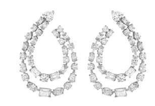 La diestra mano del maestro joyero ha combinado de forma original diamantes en cortes diversos: redondo, heart shape, marquis y esmeralda, dando como resultado una geometría única y divertida.