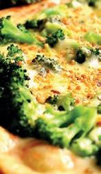 La pizza es una comida que gusta a todos, versátil y práctica. La incorporación de brócoli como ingrediente principal de la pizza es una opción ideal, ya que es un vegetal muy saludable. Contiene vitamina A, C y E, aminoácidos, potasio y zinc; también aporta una buena cantidad de fibra y mejora el funcionamiento intestinal.