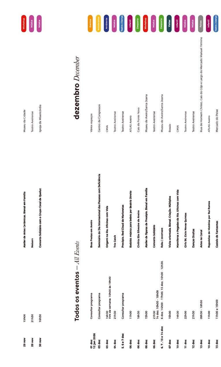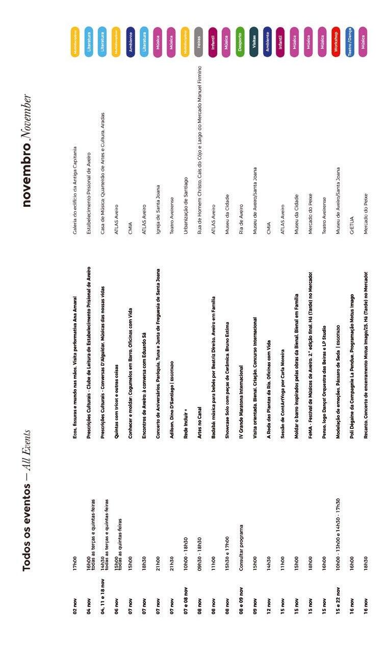 Os meses de novembro e dezembro serão marcados pela programação típica do outono e sobretudo já pela ambiência do Natal e fim de ano, ocasiões de excelência para estarmos em família, é certo, mas também, e porque não, com a família e os amigos, percorrermos a oferta cultural que Aveiro nos proporciona.