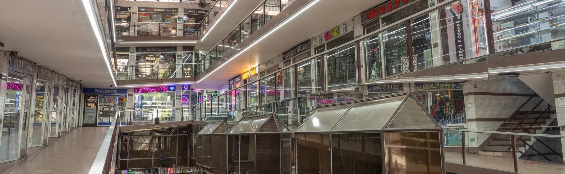 Supermercado, cafés, tiendas de juguetes, ropa interior, joyerías y oficinas.