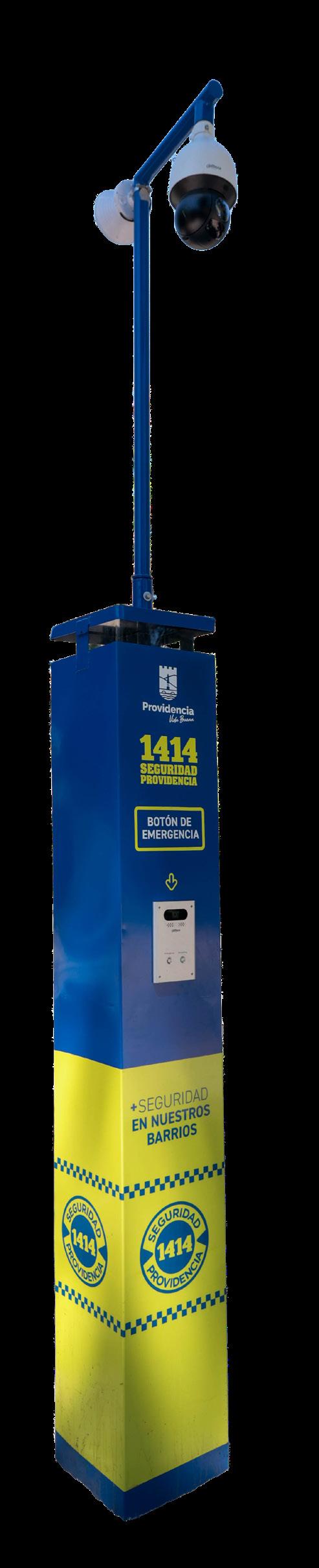 Cada tótem cuenta con cámara de alta resolución con visión 360°, alarma sonora disuasiva y un intercomunicador con cámara frontal conectado las 24 horas con la Central de Coordinación Operativa del 1414, permitiendo activar rápidamente apoyo municipal cuando se requiere.
