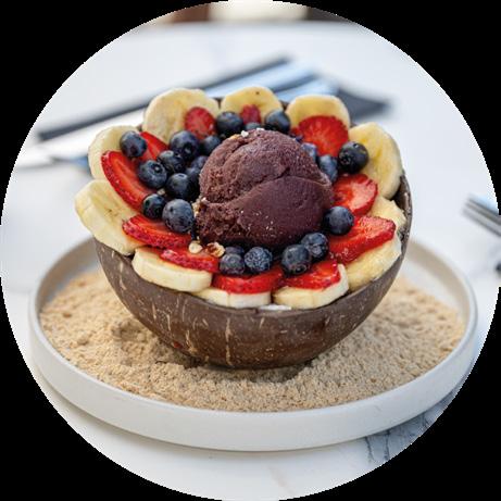 Formato: Bowl a la mesa con toppings y frutas.
