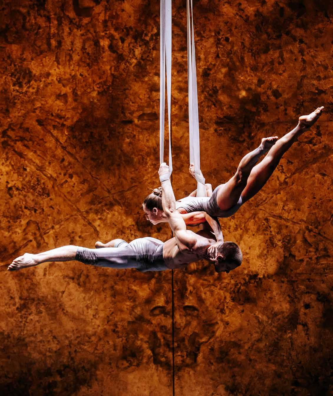 While the key medium in My Land was earth, Solus Amor largely takes place in the air, enacting a veritable “ballet in the air” in front of the viewers’ eyes. Cirque danse is a hybrid genre, presenting a sequence of breathtaking tricks that defy the laws of physics as the acrobats simultaneously execute graceful and lyrical dance movements. All of this fits the central theme of the show: love and its various manifestations, which the creators have collectively thought through in terms of how many people, ideas and things one can feel love for in one’s life, and in how many ways.