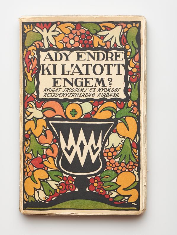 Endre Ady: Ki látott engem? [Who saw me?] Front cover of the first edition, Budapest: Nyugat, 1914. Designed by Anna Lesznai, graphic design by Endre Szász.