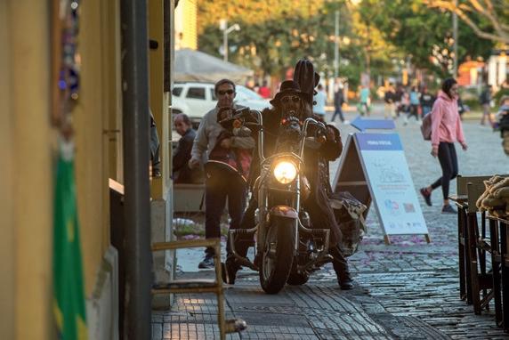 Aqui em Floripa e lá em Pomerode conversamos com o maior harleyro do mundo, Dauzelei Benetton – o Benetton, que tem nas veias uma mistura de 40% de gasolina, 40% de óleo e 20% de sangue. E conhecemos também o Manga Fredi, dono de um camping e um bar – muito maneiro – que nasceram para atender um grupo de amigos... mas hoje são os principais points do motociclismo e rock’n’roll da região de Pomerode.