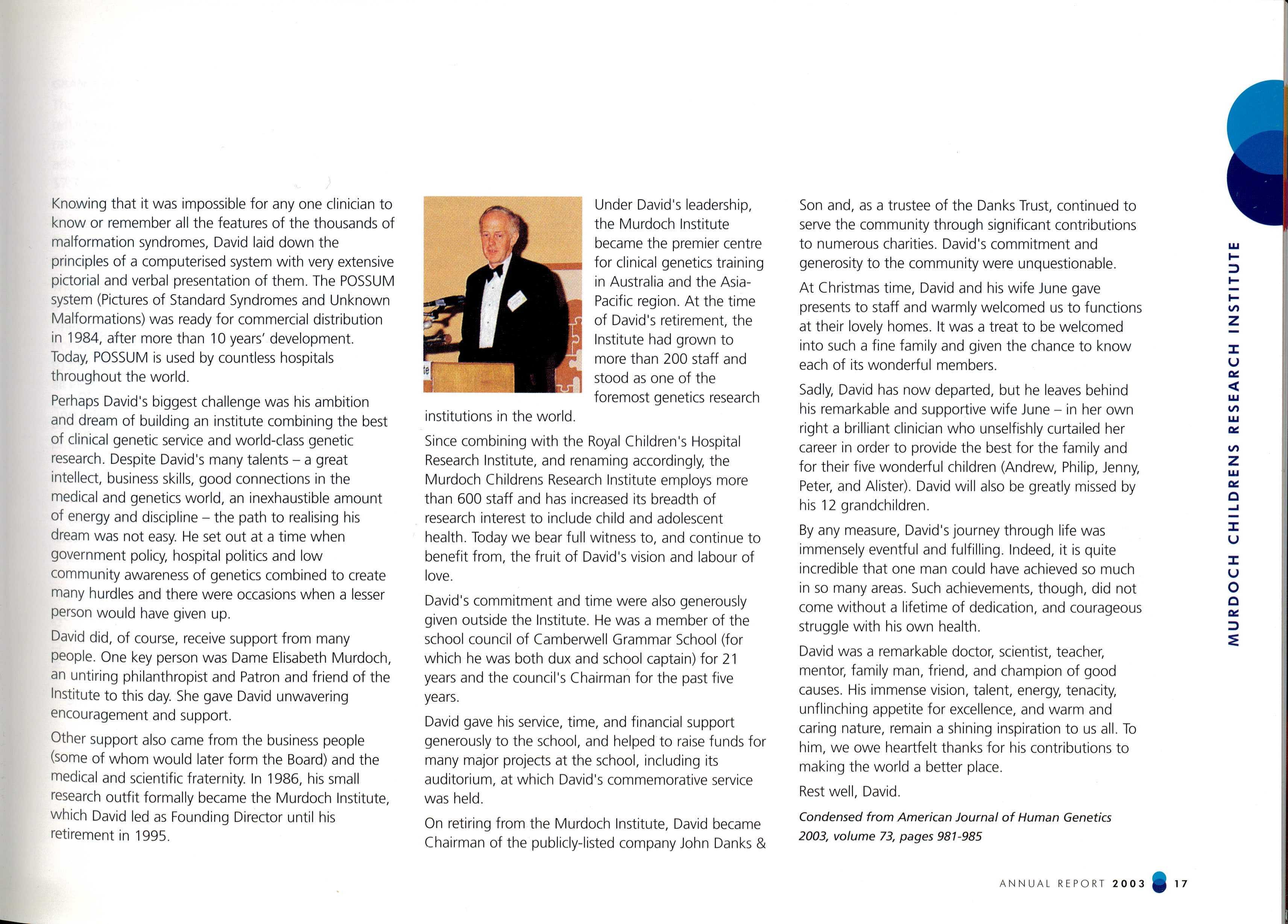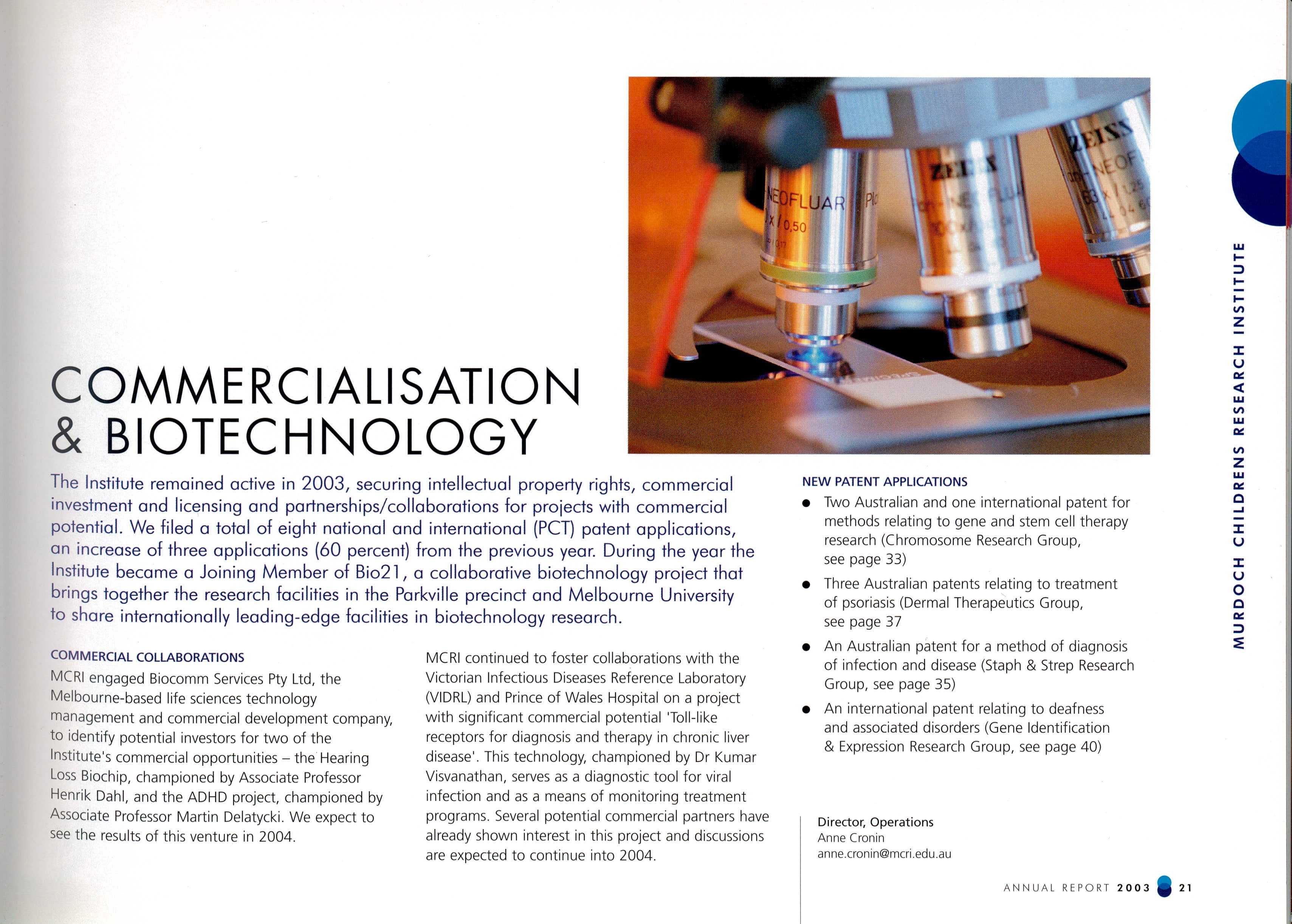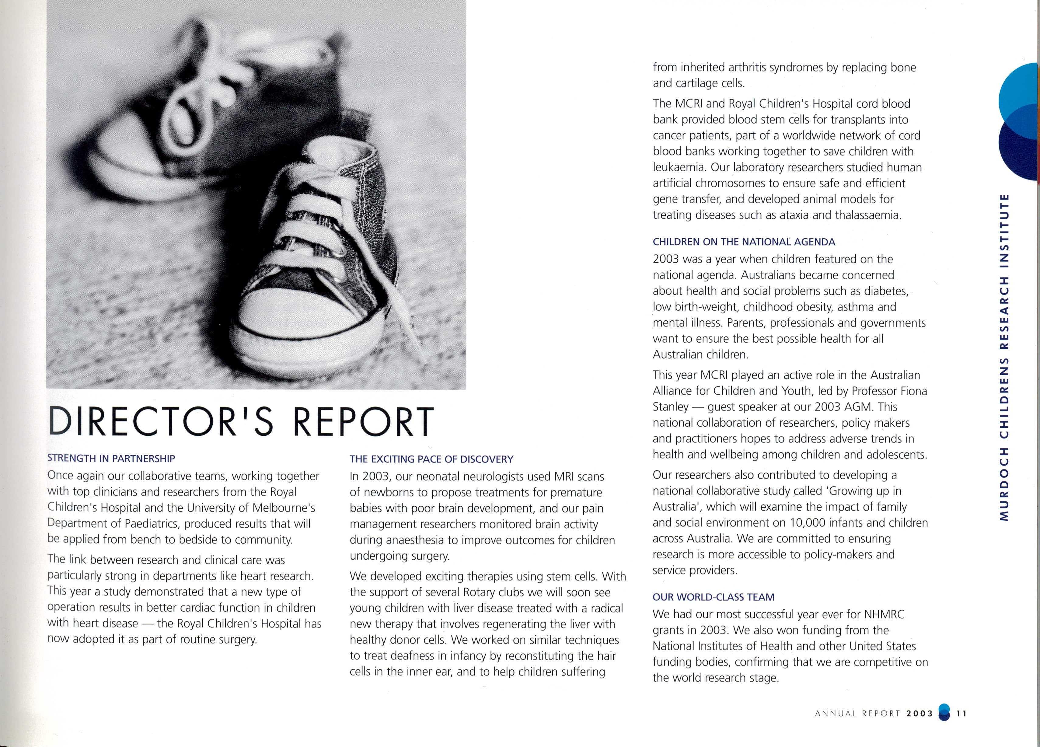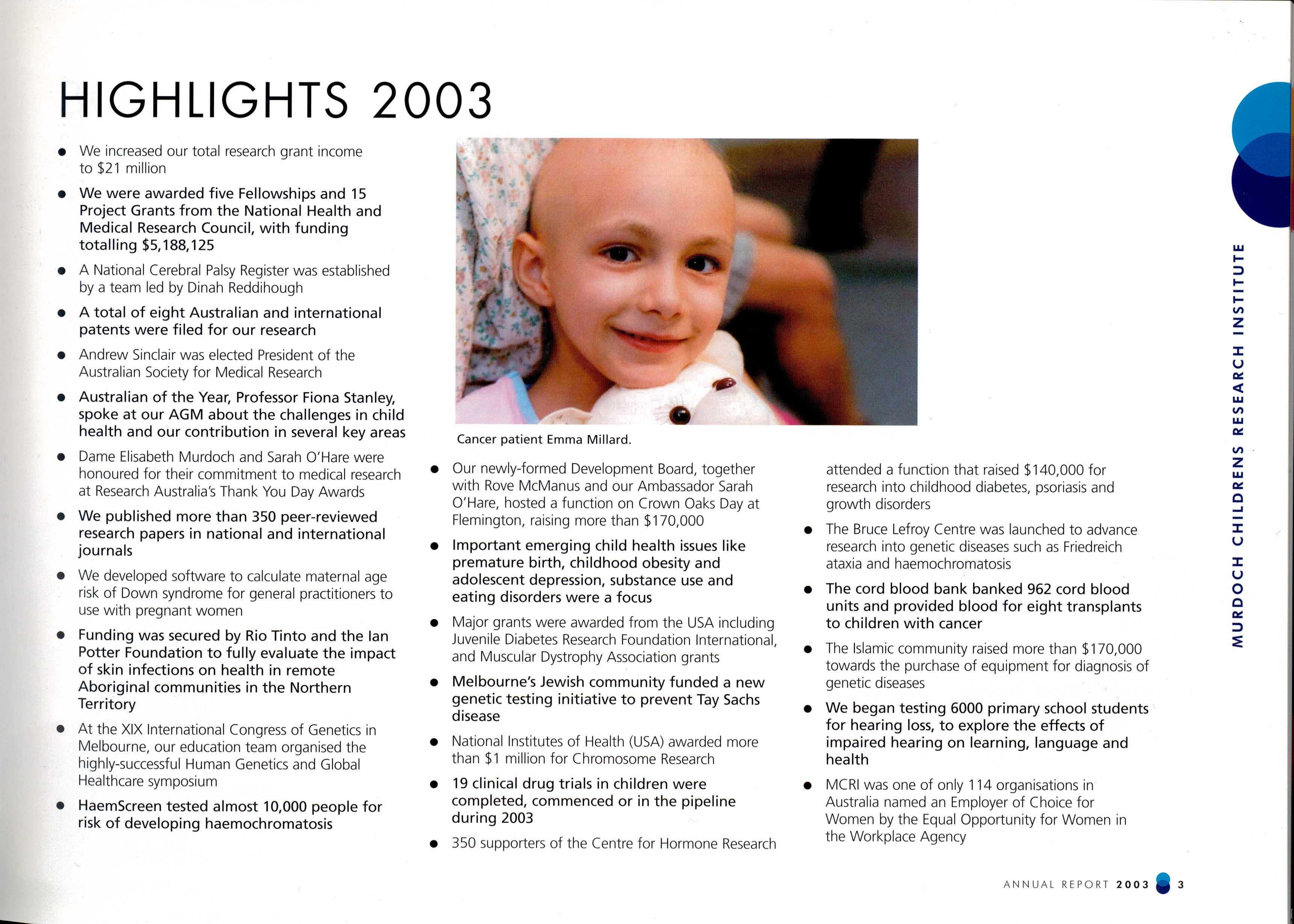 2003 MCRI Annual Report by Murdoch Children's Research Institute - Issuu