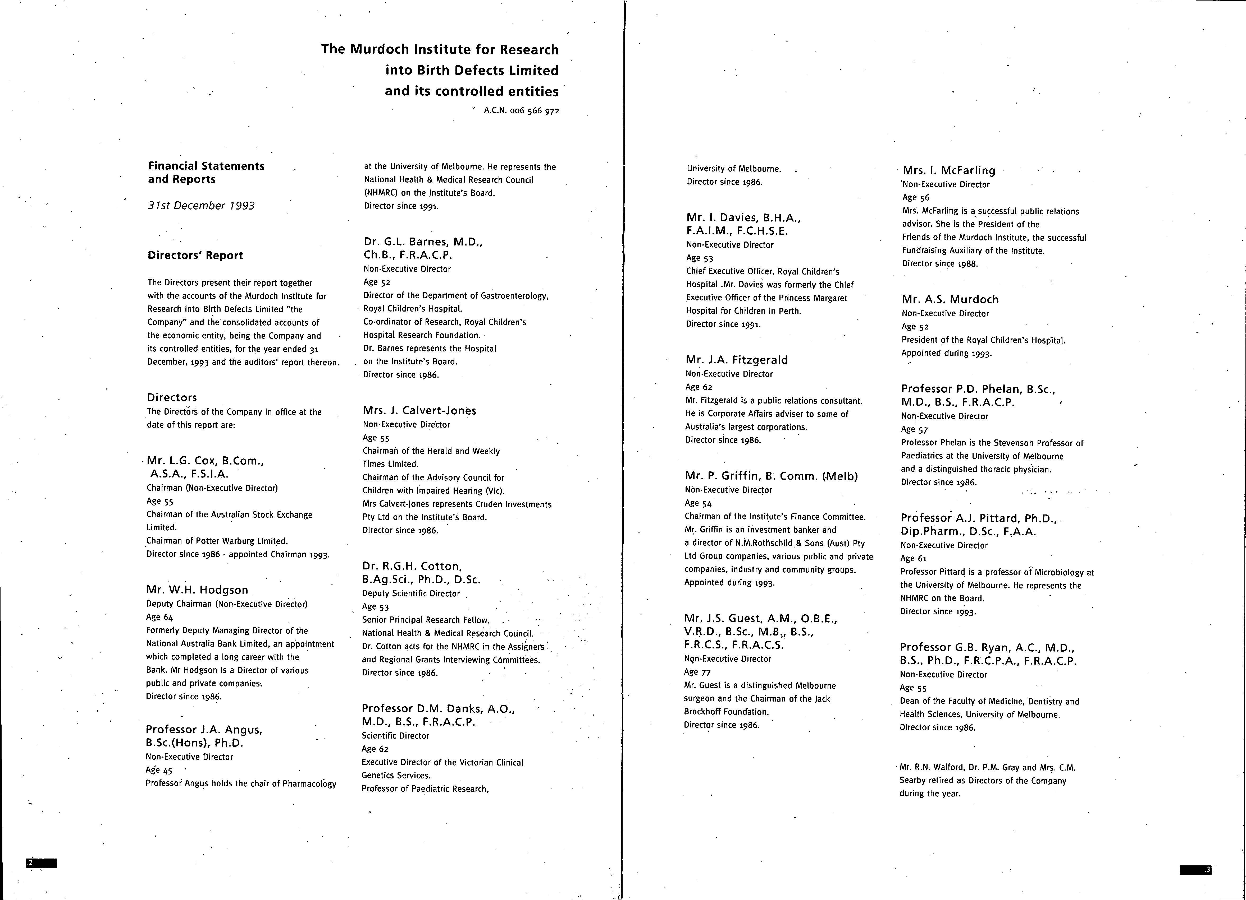 1993 MCRI Annual Report by Murdoch Children's Research Institute - Issuu