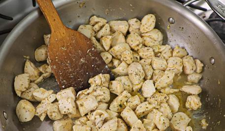 2. Heat 1 tablespoon of the oil in a large skillet over medium heat. Add the chicken and cook, stirring often, until cooked through, about 5 to 8 minutes. Remove the chicken from the pan, place it on a plate, and set it aside.