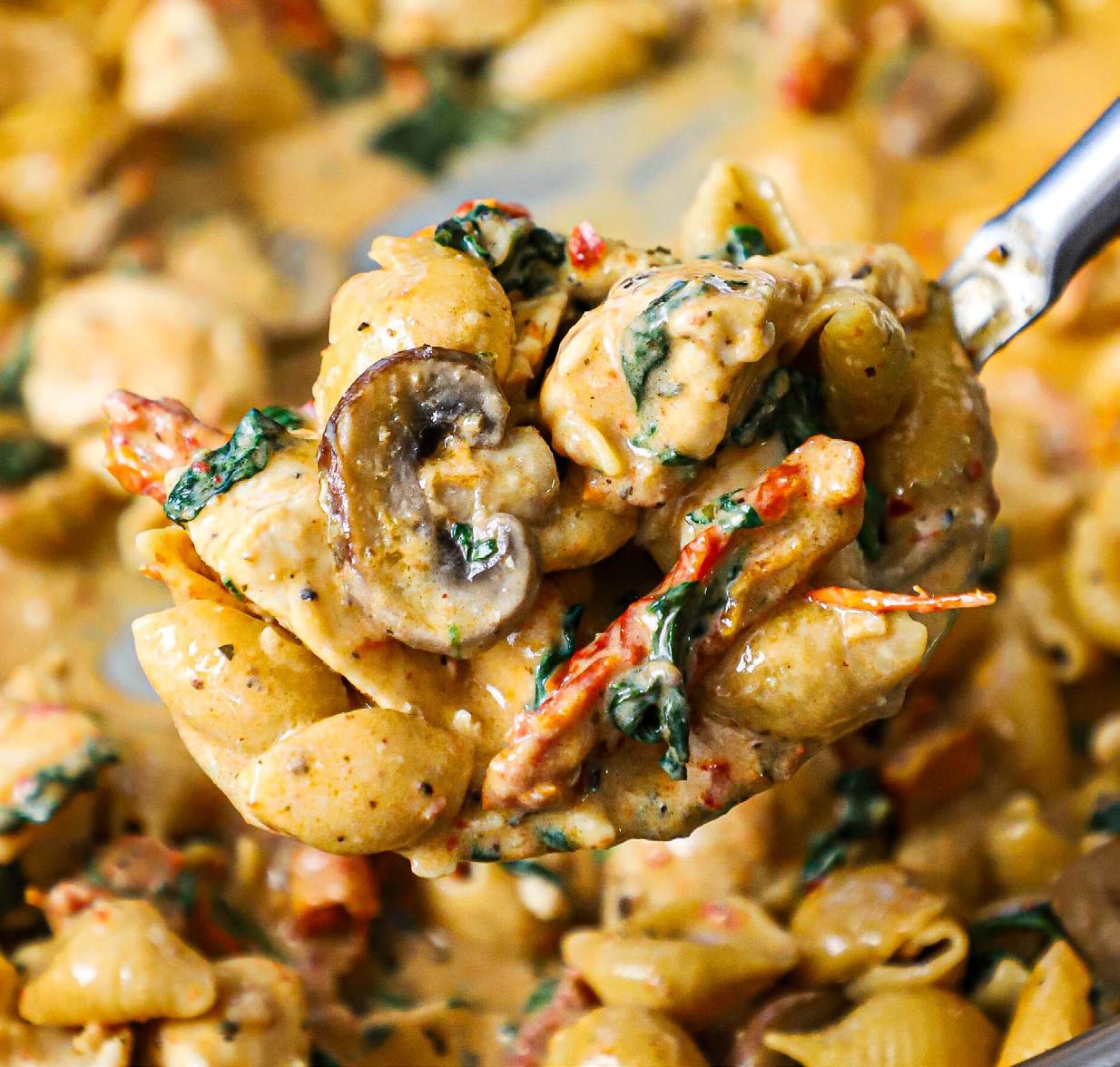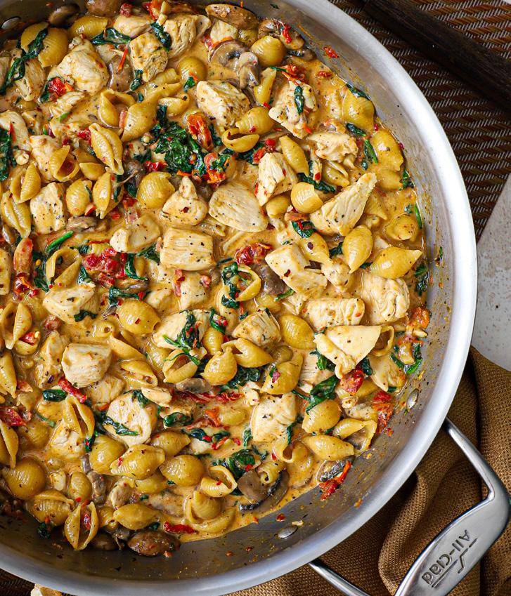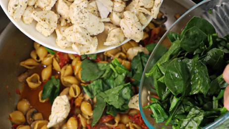 For a major flavor boost, we use some of the oil from the sun-dried tomatoes to sauté the chicken and mushrooms. You won’t need all of it for the dish. We save the remaining oil and add a pinch of dried herbs and red pepper flakes for a wonder-