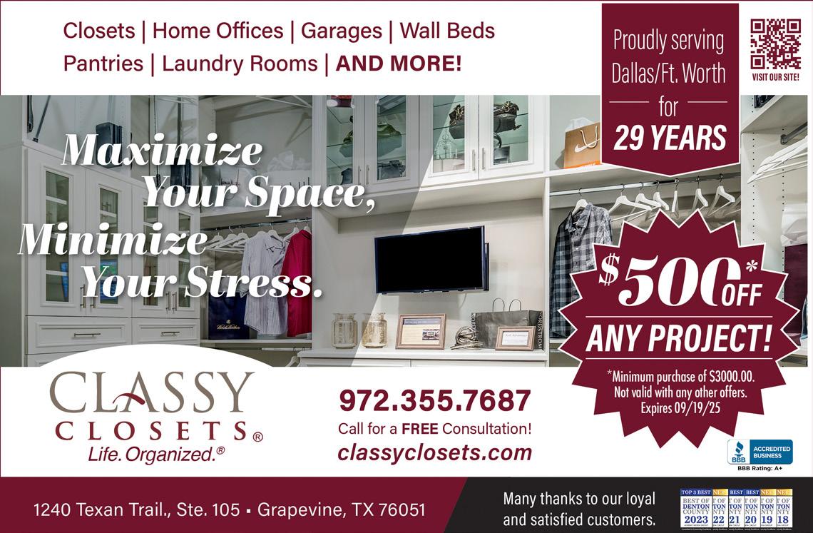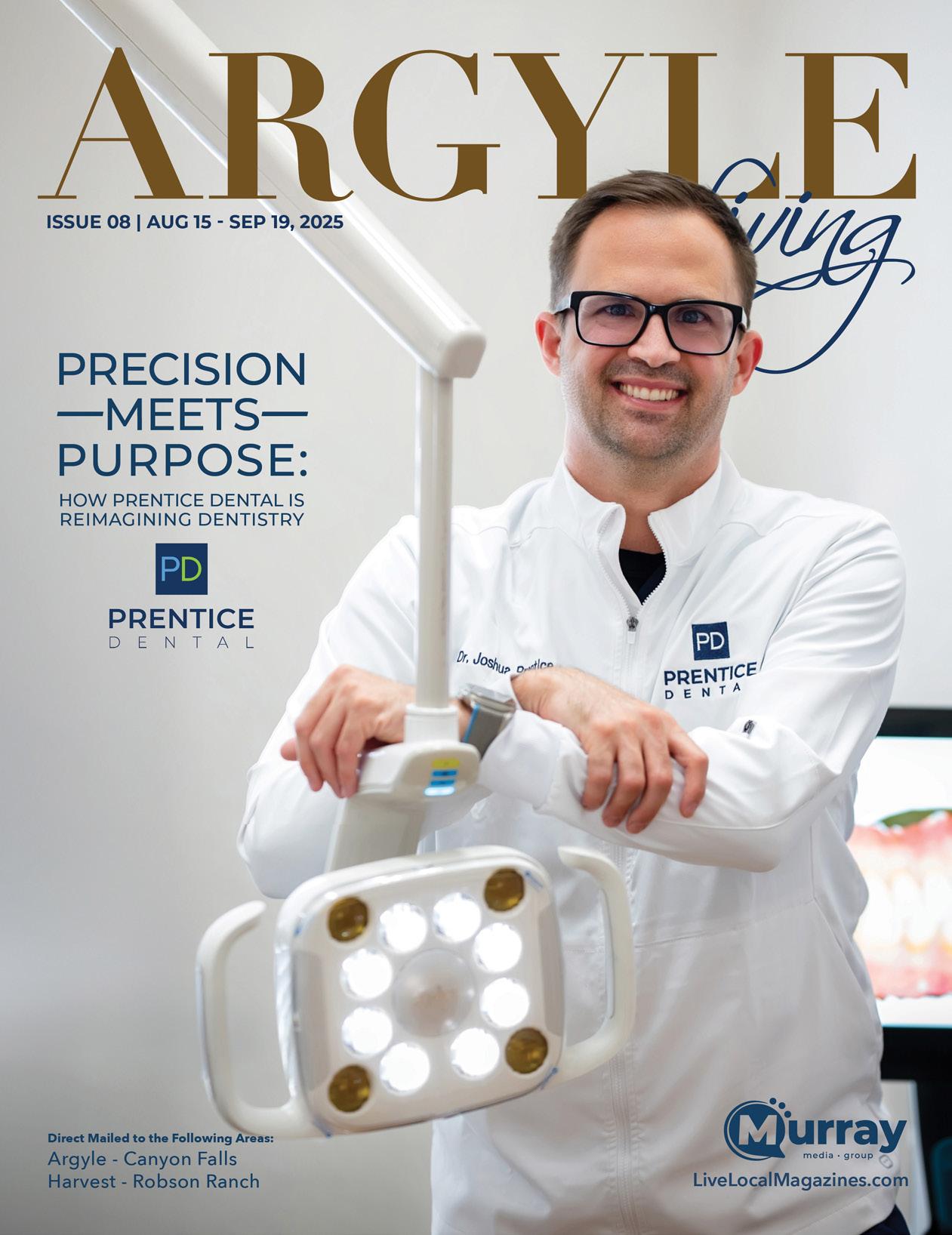 Argyle Living is published monthly by Murray Media Group. Some articles and/or content may be sponsored by advertisers. Opinions expressed in articles or advertisements do not necessarily reflect the opinion of the publisher. Argyle Living is not responsible for omissions or information that has been misrepresented to the magazine. Advertisers and its agencies assume all liability for advertising content. No part of this publication may be reproduced or transmitted without the permission in writing from the publisher.