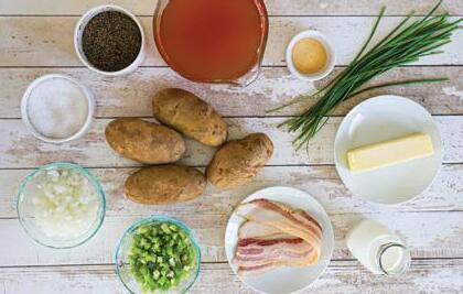4. Serve hot garnished with crumbled bacon and snipped chives (if desired).