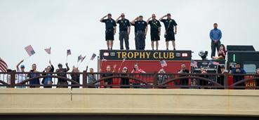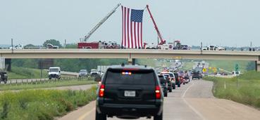 The week begins with an escorted motorcade of 500 motorcycles and service vehicles. Starting at DFW International Airport, it rolls along Highway 114 before heading north on I-35W to Gainesville. Crowds line streets and overpasses, waving flags and holding signs in a powerful show of gratitude.