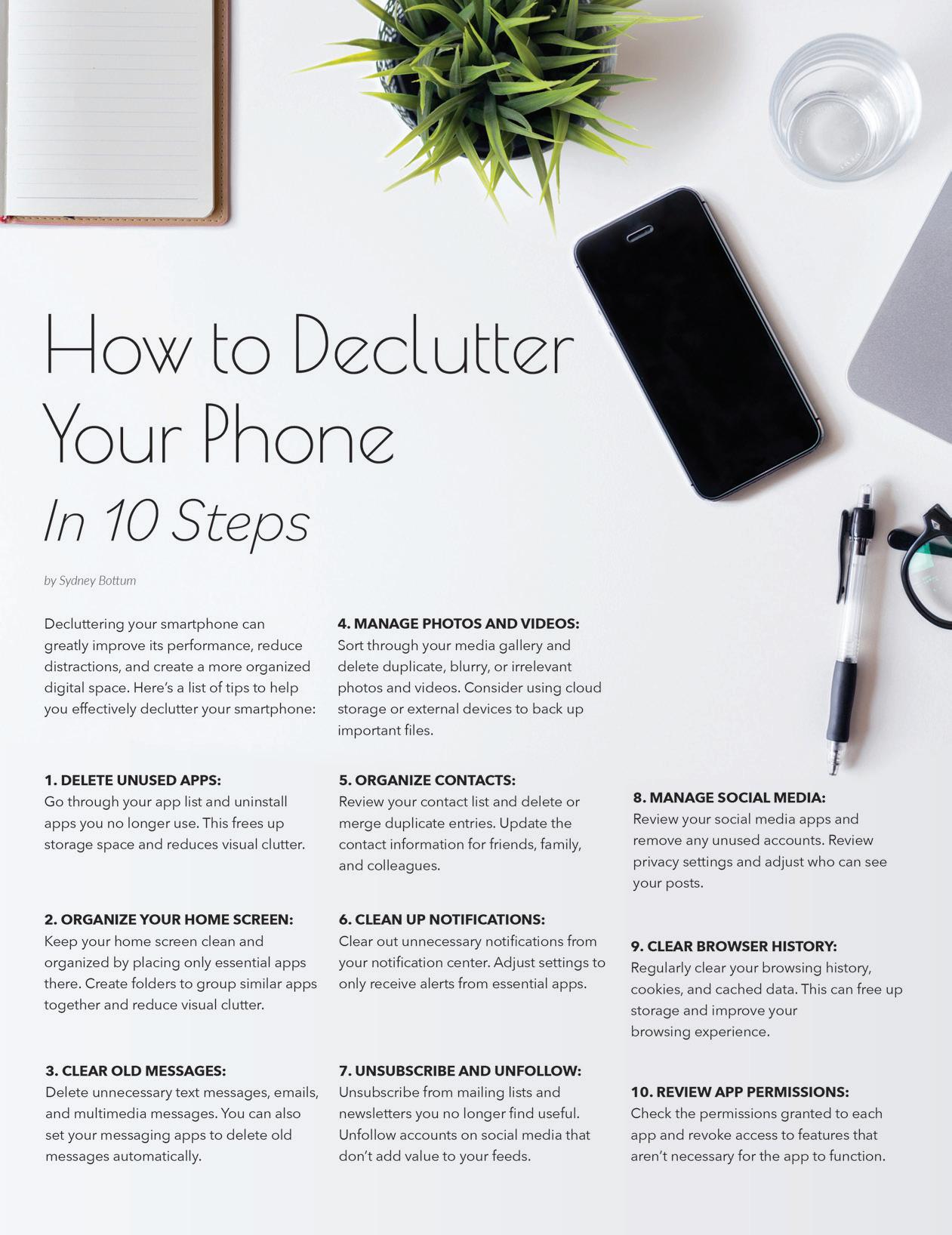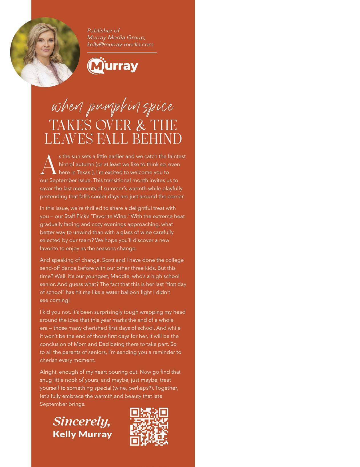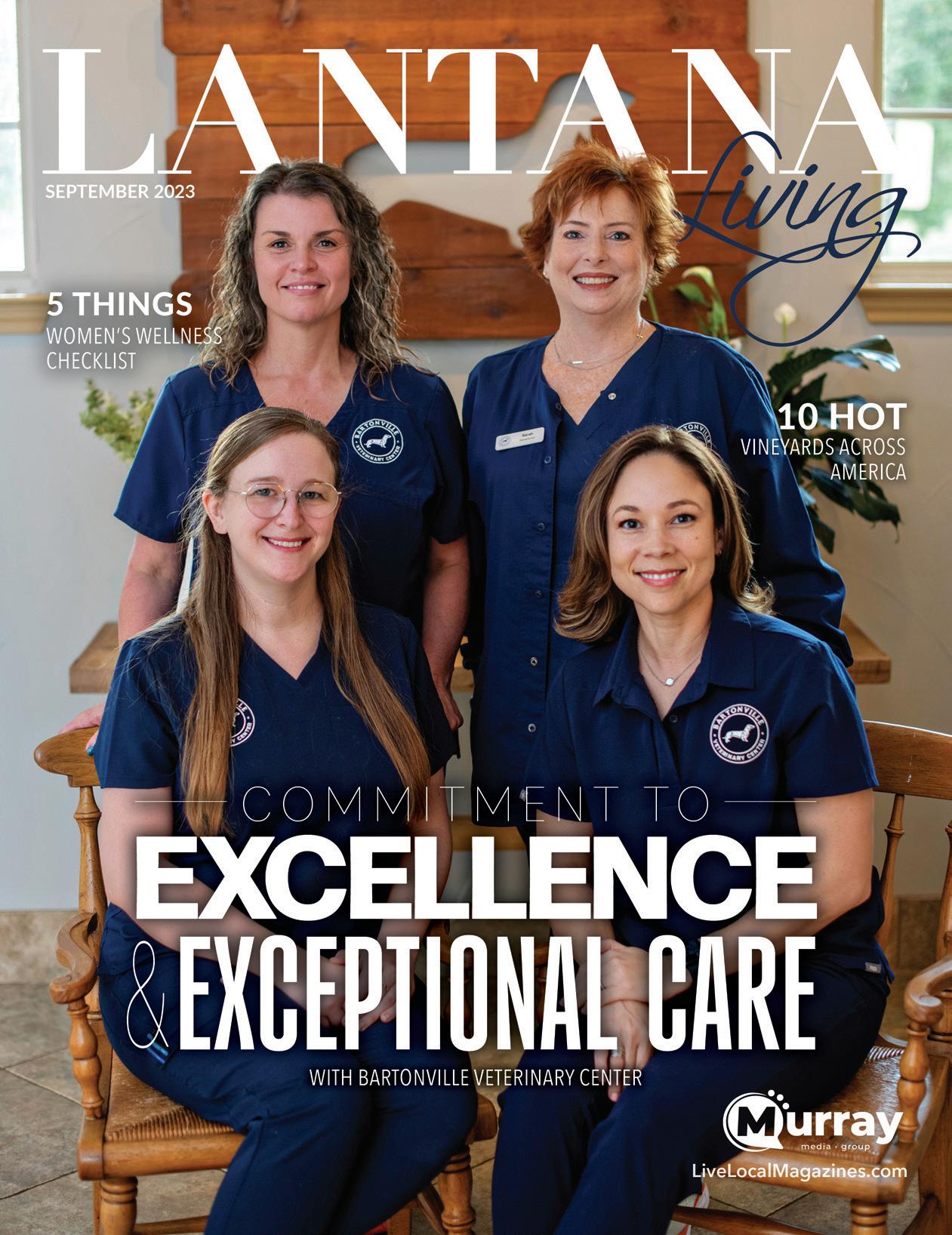 LiveLocalMagazines.com SEPTEMBER 2023 | LANTANA LIVING | 5 48 Cultivating Awareness For Breast Cancer 50 Food & Wine Pairings Cheatsheet 51 How to Declutter Your Phone in 10 Steps 08 Ten Hot Vineyards Across America 10 Lantana Pediatrics: Mental Health & Children 12 Fall Fashion Guide 14 Travel With Terri Guthrie 16 Fitness With Outlaw Fitcamp 18 River Walk Social 20 Gardening With Complete Solutions 22 Be Real with Tony Jeary 24 Decorating With Posh Home Staging & Redesign CONTENTS 44 | ON THE COVER Dr. Melissa Cordero and Team with Bartonville Veterinary Center 28 Judge Andy Eads: Economic Development Drives The Future 30 Giving Grace Gaining Hope 32 Dental With Country Lakes Family Dental 33 Sheriff’s Corner With Sheriff Tracy Murphree 34 Team Picks: Favorite Wine 36 The Big Debate: Favorite Wine, Red or White? 38 5 Things: Women’s Wellness Checklist 40 Mayoral Pizza 42 Steel Rose Band 46 Foodie Friday DFW: Tomo Sushi 52 Fun & Fabulous With Food 55 National Pancake Day 56 6th Annual Duck Derby 58 Back To School Photos 60 Lantana is Thriving
