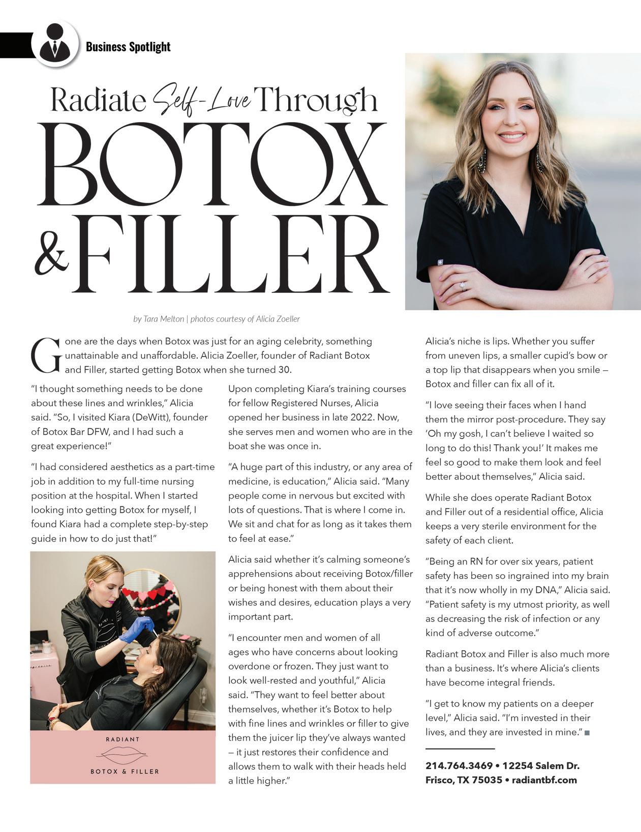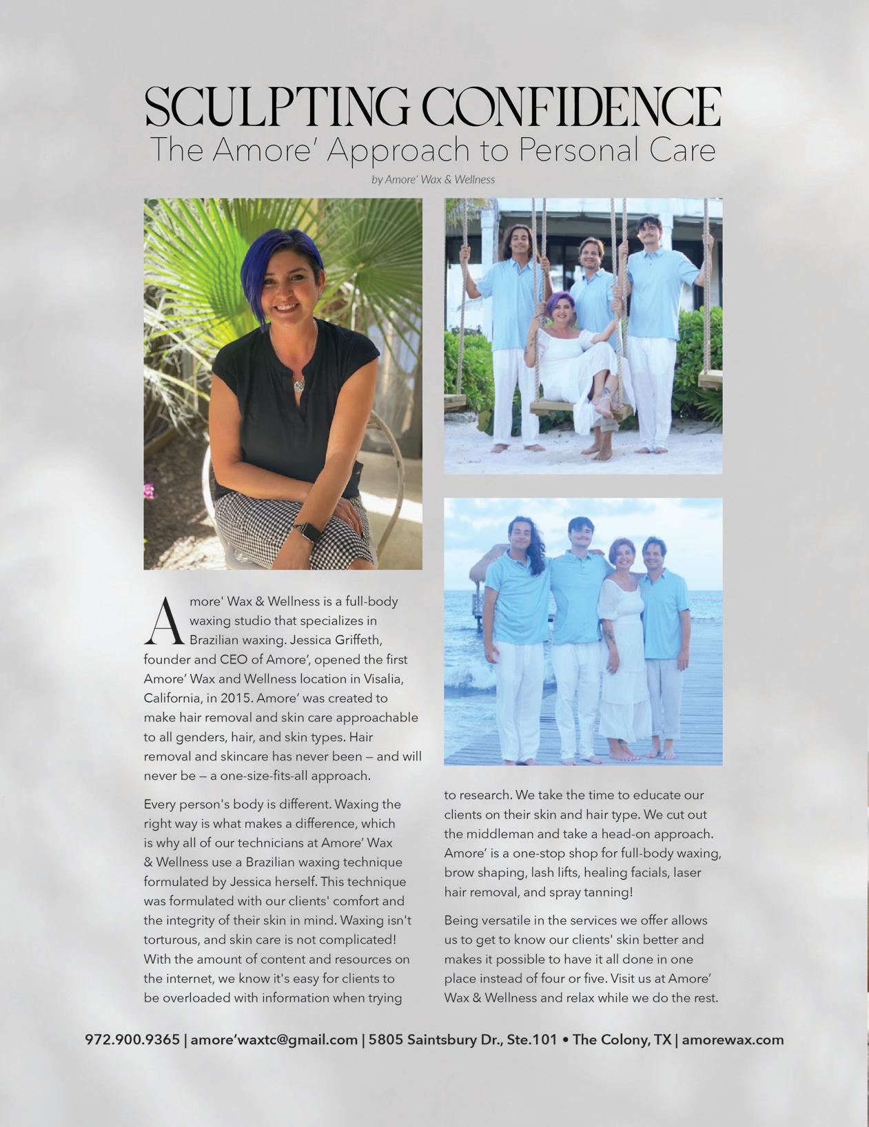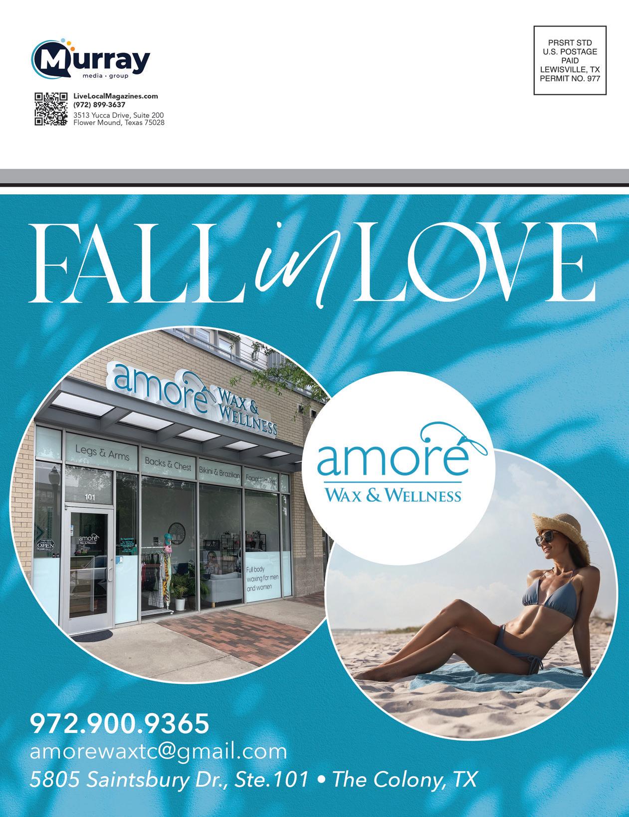 LiveLocalMagazines.com SEPTEMBER 2023 | LIFE IN CASTLE HILLS | 5 26 Giving Grace Gaining Hope 28 Team Picks: Favorite Wine 08 Fall Fashion Guide 10 5 Things: Women’s Wellness Checklist 11 Bobbie Mitchell: Helping Others This North Texas Giving Day 12 Ten Hot Vineyards Across America 14 Radiant Botox & Filler: Radiate Self-Love Through Botox & Filler 15 Sheriff’s Corner With Sheriff Tracy Murphree CONTENTS 20 | ON THE COVER Amore’ Wax & Wellness with owner Jessica Griffeth 16 A Quiet Life of Adventure 18 Mayoral Pizza 22 6th Annual Duck Derby 23 National Pancake Day 24 Cultivating Awareness For Breast Cancer 29 The Big Debate: Favorite Wine, Red or White?