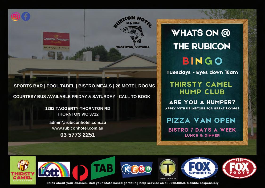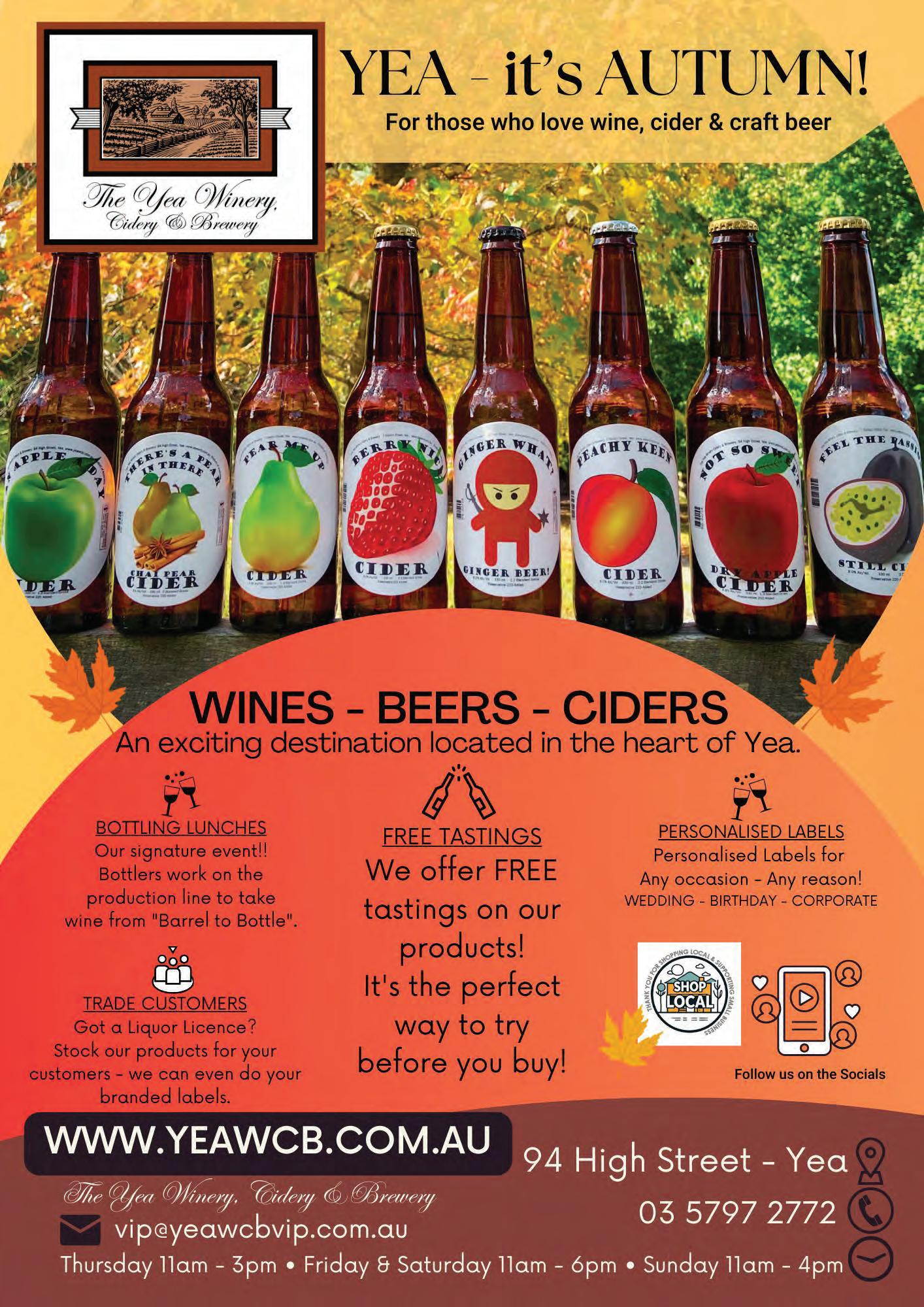Murrindindi’s INDEPENDENT guide to events and attractions across the shire and surrounds for locals and tourists alike. Pick up a copy at one of our advertisers or information centres in the shire or surrounding towns. Please support our advertisers as without them this magazine couldn’t be produced. If we support our local businesses and communities then we improve our local economy. Keep it local if you can.
