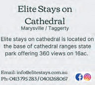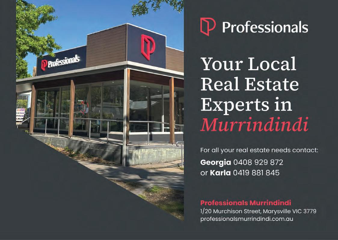 Produced and published by Ann Friedel Publishing, 11 Albert Street Alexandra Victoria. Material published in the Murrindindi Arts & Tourism, Business & Trades Guide is protected by Australian and International copyright laws. Reproduction of any material in whole or part is not permitted without prior authorisation by the publisher. Ann Friedel Publishing has made every effort to ensure the information provided at time of printing is correct, but accepts no responsibility for any inaccuracies or omissions. Some components of some advertising in this magazine are made by Freepik.com or allfree-download.com. Events listed in this publication may be subject to change without notice.