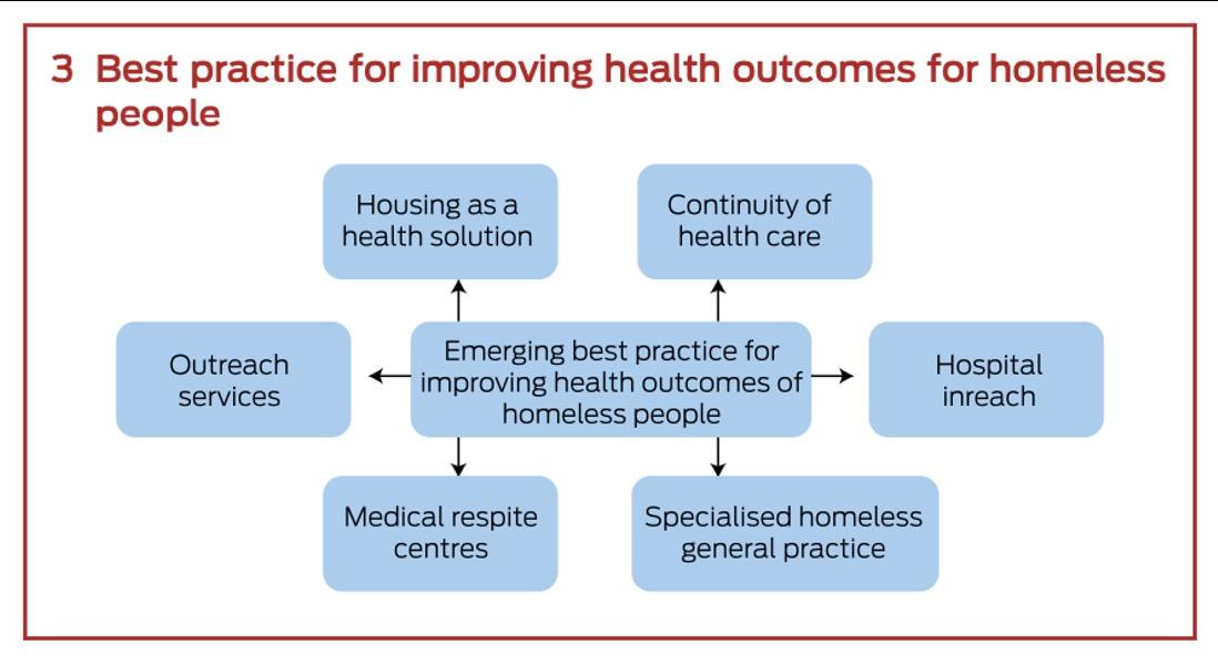 Opportunities exist to improve the responsiveness of services and systems to more appropriately meet the health needs of people experiencing or at risk of homelessness — this includes being more flexible, less stigmatising, more proactive and earlier engagement, better follow-up, and more integration between health:housing services