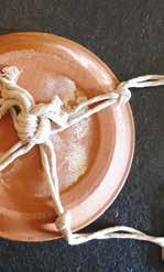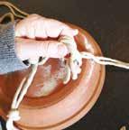 Huel allkéiers 2 Ficellen zesummen a maach e Knuet dran, just iwwer dem ënneschte Bord vum Teller.