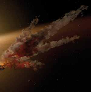 * Koméit: e feste Kierper aus Äis, Steng, Stëbs a gefruerene Gasen, deen e sougenannte Schwäif hannert sech zitt.