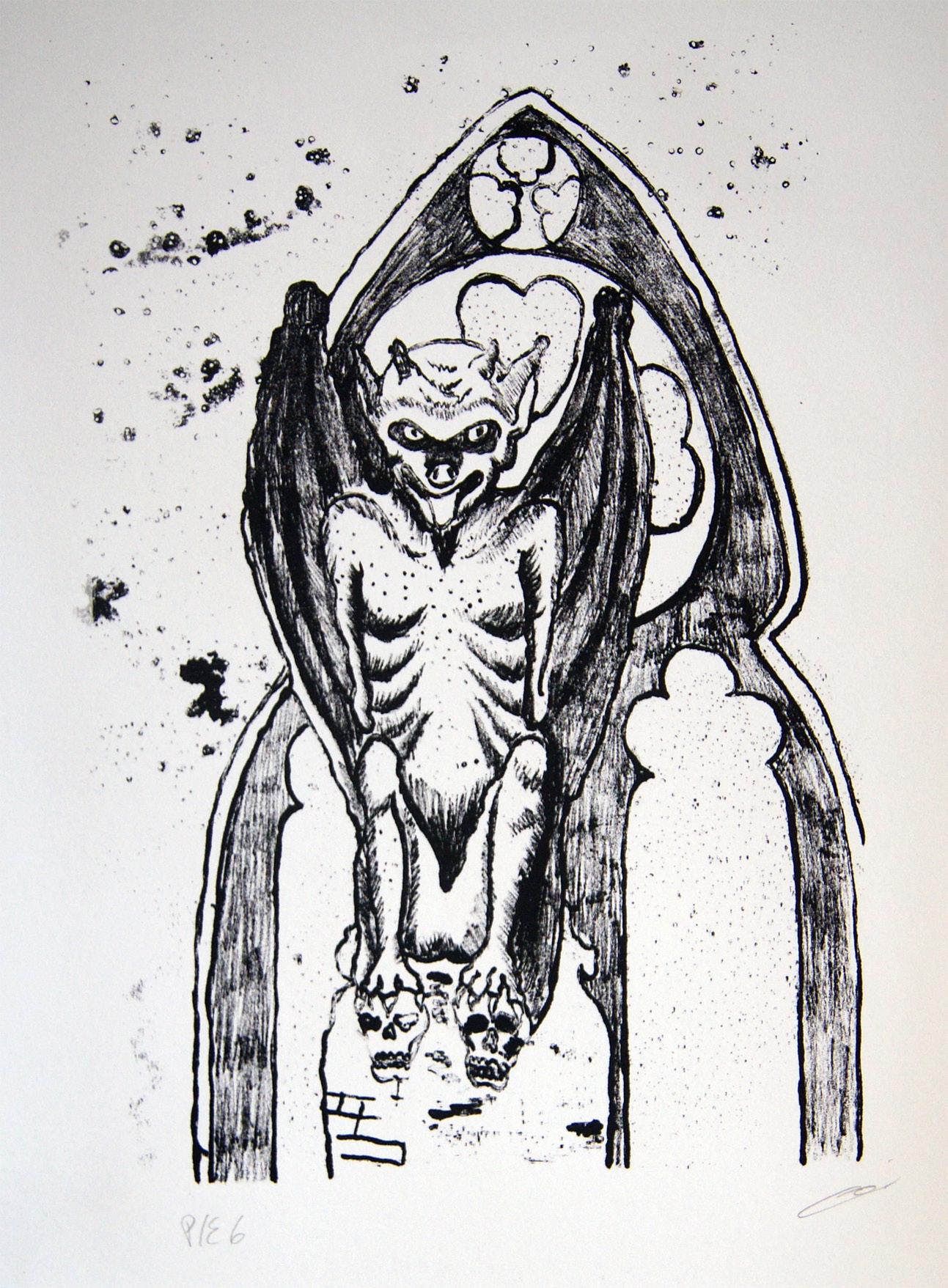 ANDREAS OSIMANI GÁRGOLA Litografía, lápiz y aguada