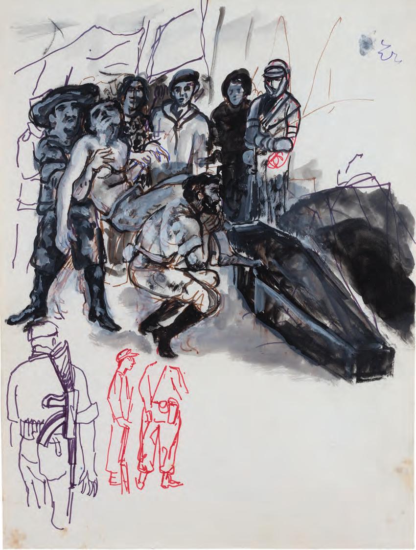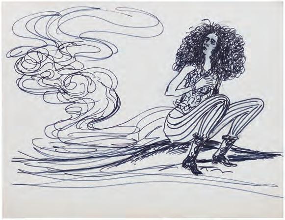 El desnudo en grafito C at 40 es ya de los años 70 y aparece, por ejemplo, en las ilustraciones para El Decamerón, en algunos de los fotomontajes de 1974 y 1975 como Mujeres en la cárcel o en las escenas de cabarets de los mismos años. Los dos desnudos del C at 42 están muy cerca de la serie de serigrafías titulada “La obsesión por la belleza” de fines de esa década, que reconoce una versión en una pintura de gran tamaño de la misma época.