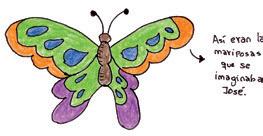 En cambio, le encantaban las mariposas. Un viajero le había contado que, en Brasil, un país pegadito a la Argentina, había mariposas verdes, azules, rojas y amarillas. José imaginaba las mariposas y soñaba que viajaba a Brasil para conocerlas.