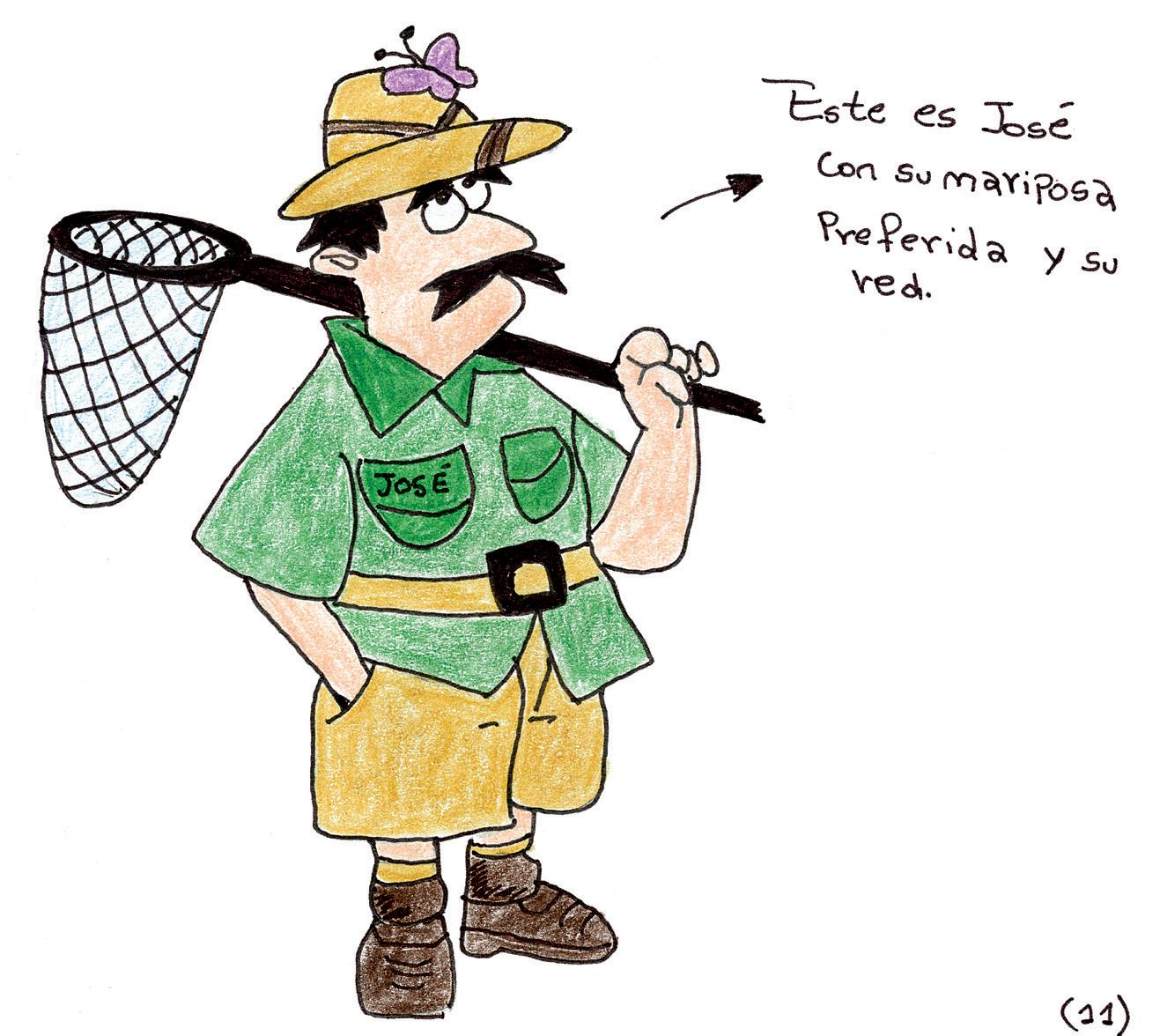En general, cuando se ve a un hombre con una red en medio del bosque, se piensa que es un cazador, es decir, un hombre que captura y mata animales para coleccionarlos, pero yo te conté que José era especial. De alguna manera lo podemos imaginar como un cazador, porque capturaba mariposas; pero él no las mataba, sino que las llevaba a pasear por el bosque.