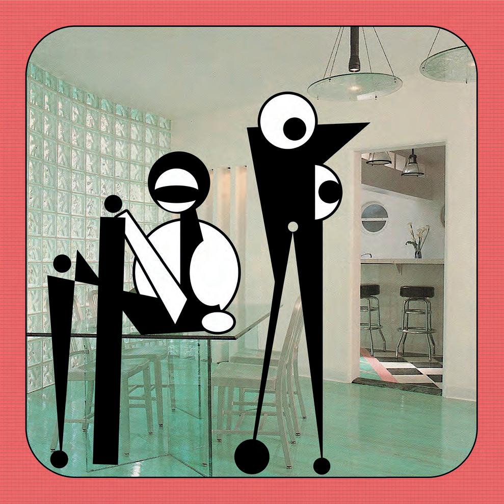 En la serie “Queer Deco”, Minoliti se apropia de las fotografías de decoración de interiores vintage y las habita con personajes que tienen elementos humanos y geométricos extemporáneos. Para esta exposición, Minoliti creó nuevas obras con nuevos espacios, nuevos fondos y nuevos seres para que se incorporen a la familia preexistente, una familia que crece en cada serie.