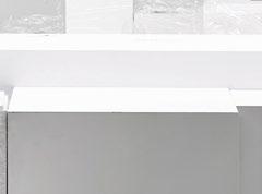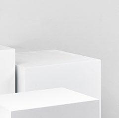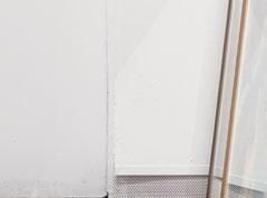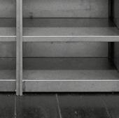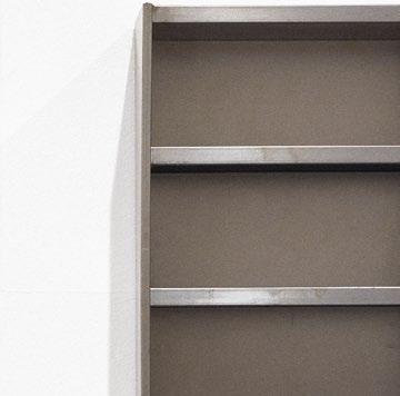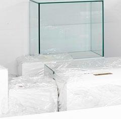 Inicialmente se iba a elevar como una plataforma horizontal sostenida sobre cuatro caballetes. Se descartó dicha idea cuando el resto de obras ya resolvían la exposición; sin embargo, se optó mantenerla en la sala, presentándola en su materialidad exenta, desprovista de contenidos, retirando los caballetes, yuxtapuesta al propio suelo.