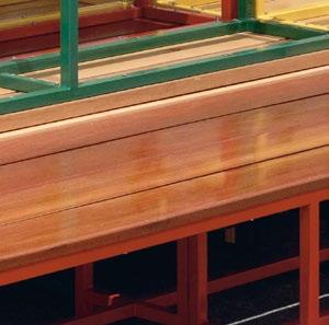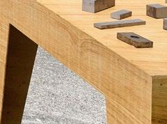La superficie se ensambla para cada ocasión, juntando las tablas mediante machihembrado. La manipulación del montaje y desmontaje genera erosión y marcas que permanecen visibles, como secuelas de su propio pasado.