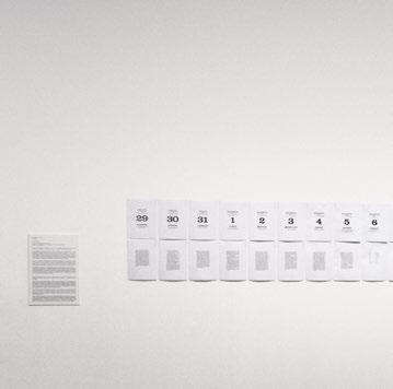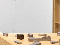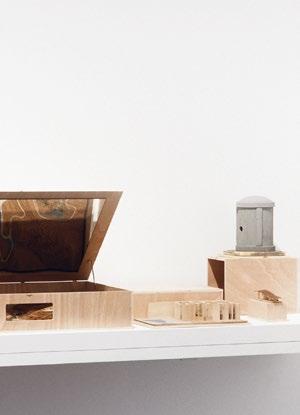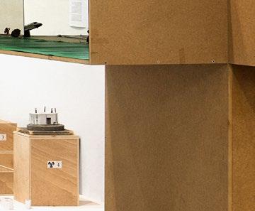 La superficie entarimada fue ideada por los comisarios de la institución para acoger material de archivo de varios proyectos en la exposición individual del artista. La madera de bricolaje de uso común se tiñó de tono oscuro para emular el suelo de la sala de exposiciones, con acabado noble de finales del siglo XIX.