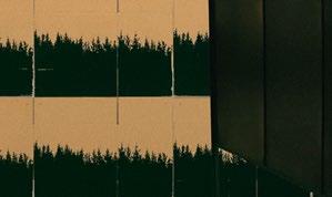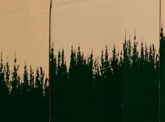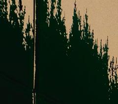 En la primera grabación, la cámara de vídeo captura desde la distancia la silueta recurrente de las plantaciones forestales. El travelling se practicó varias veces a través de la ventana del autobús que recorre la autopista del norte. Las imágenes resultantes se completaron con otros movimientos de cámara —paneo y zoom in/out— apuntando a esas mismas plantaciones desde otros ángulos.