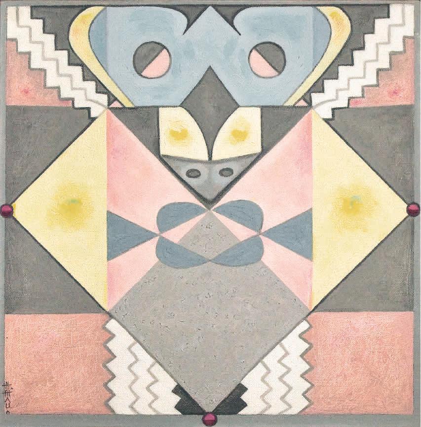 Maruja Mallo es la gran artista del siglo xx español. También fue la figura que dio forma plástica a las inquietudes de la generación del 27. Por su heterogeneidad, pero también por su especificidad contextual, Mallo desborda cualquier intento de categorización cerrada. En su obra, fueron fundamentales su interpretación de lo popular y la tensión entre lo animado y lo inanimado que definió sus exploraciones surrealistas. Pero su práctica artística, como la de otras creadoras de su época, no puede examinarse únicamente desde el prisma de los movimientos artísticos predominantes, sino también por su rebeldía ante los moldeS y cánones impuestos. Como afirma Patricia Molins, comisaria de la exposición Maruja Mallo. Máscara y compás, las series Verbenas y Estampas —los primeros trabajos con los que se dio a conocer— posicionaron a Mallo como una de las personalidades más destacadas de la generación del 27, grupo en el que confluyeron tradición y vanguardia, reivindicación de lo vernáculo y vocación de universalidad. Las Verbenas giran en torno a la fiesta, que la artista concibe como el espacio en el que el pueblo despliega su vitalidad y creatividad, a través de un lenguaje geométrico y simbólico que será central en su producción posterior. Con las Estampas exploró el concepto cinematográfico de simultaneidad y superposición, y creó una atmósfera que recuerda a la del cine expresionista. Ambas series se presentaron en la exposición que la Revista de Occidente le dedicó en 1928, su primera irrupción con voz propia en la escena pública. A lo largo de su carrera, Mallo gestionó de manera consciente su imagen pública y encarnó el símbolo de una “mujer nueva”, activa e independiente que, como argumenta en su ensayo Alejandra Zanetta, también representó en su pintura.