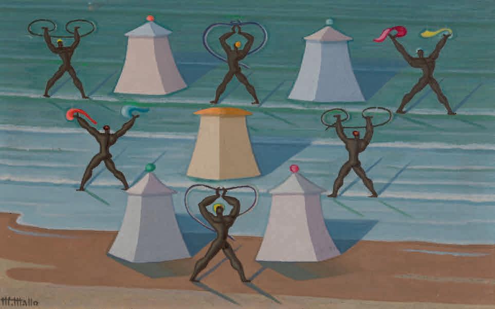 peces (Figuras, 1937) o las composiciones de conchas y flores que clara y sensualmente sugieren los órganos femeninos (Naturalezas vivas, 1941-1943). Centrándose en un necesario rechazo hacia el dualismo cartesiano (que divorcia lo mental de lo corporal) y en una crítica hacia la prevalente separación dicotómica entre naturaleza y cultura, la investigadora Alejandra Zanetta relata la intención de Mallo de construir con su pintura “una mitología para un nuevo orden”, uno que se dibuja más armónico y justo, que centra a la mujer moderna, trabajadora e independiente y que abraza la materialidad del cuerpo como origen de toda experiencia —un cuerpo que es inseparable del mundo natural y material—. Zanetta, autora que ya con anterioridad se ha ocupado de las conexiones telúricas y mitológicas en la obra de la pintora, nos ofrece ahora un nuevo estudio sobre la influencia de los sincretismos de las religiones afrouruguayas y afrobrasileñas que Mallo descubrió durante su exilio en Argentina, y sobre sus últimos años, en los que su fe en la transcendencia humana se expande gracias a su conocimiento de los avances tecnológicos de la época y su interés por la energía cósmica, los cuales plasma en sus Viajeros del éter (1982).