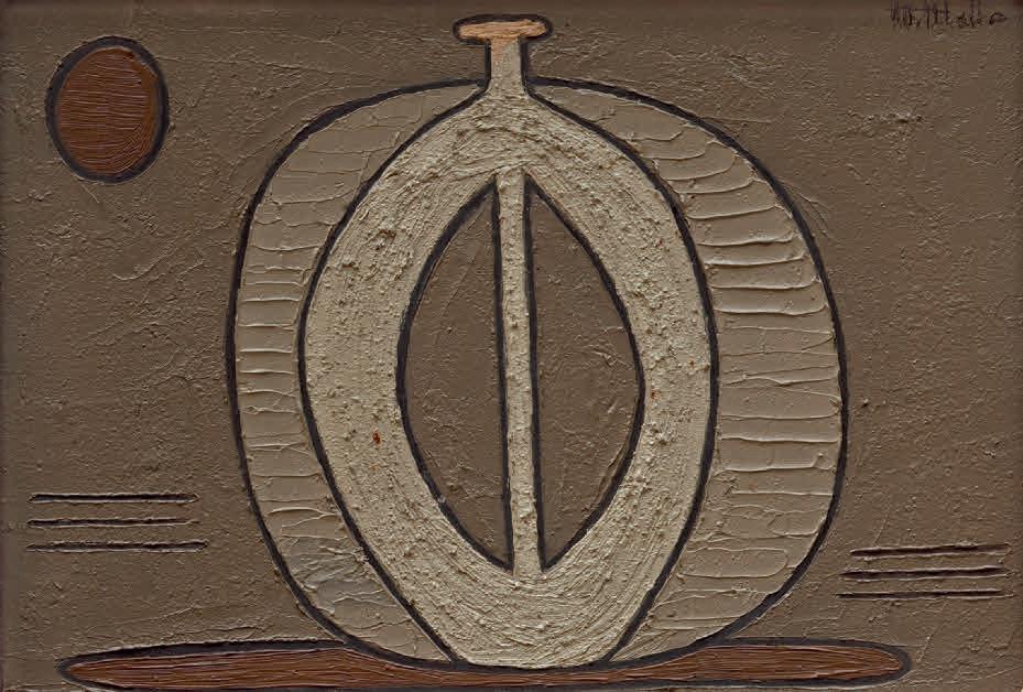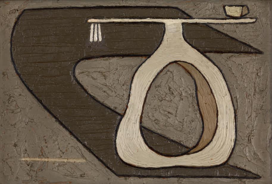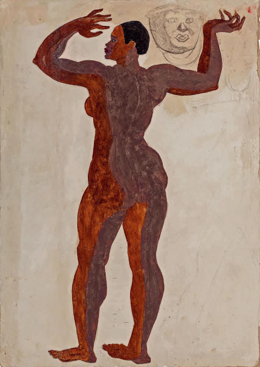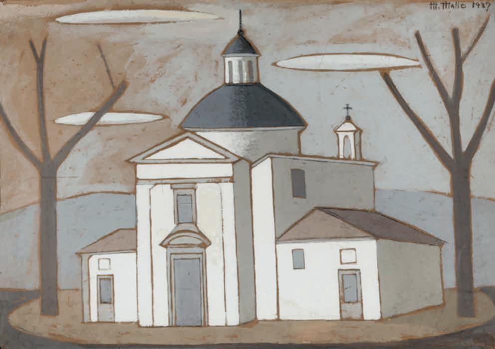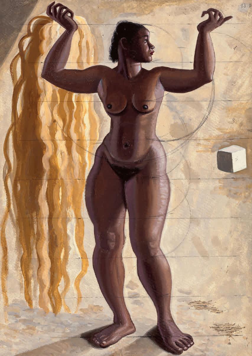 entre 1933 y 1936, cuando se vinculó con el grupo de artistas de la llamada Escuela de Vallecas. Una etapa de profunda búsqueda y reflexión que dio lugar a sus Construcciones rurales, sus Arquitecturas —una de las cuales, Arquitectura fósil I (c. 1933), se presenta por primera vez en la exposición tras años en paradero desconocido— y los conjuntos de cerámicas que realizó en la Escuela de Cerámica de Madrid. La voluntad de aunar geometría, mística y una cierta poética de lo telúrico también está presente en las efigies femeninas monumentales de La religión del trabajo, serie que elaboró durante la Guerra Civil y que, en este catálogo, sirve a Johanna Hedva para explorar la relación entre el tiempo y el trabajo en su original texto escrito a modo de conversación imaginaria con la artista.