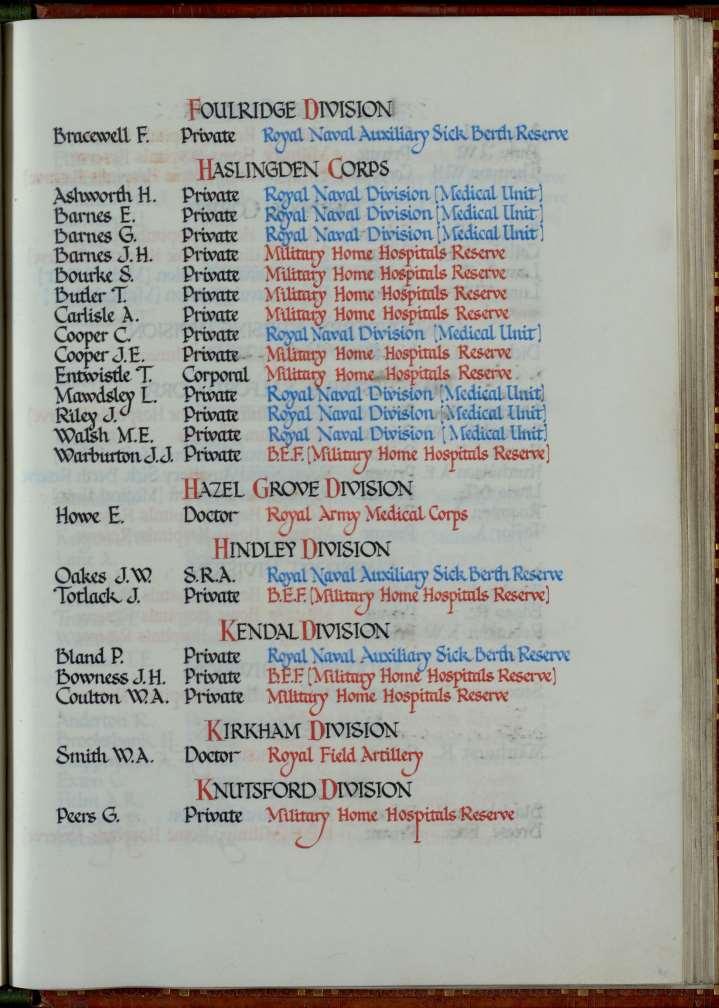 The Roll of Honour contains the names of the 1,077 members of the Order of St John, volunteers of the St John Ambulance Brigade and members of the Territorial Branch of the St John Ambulance Association, who lost their lives during the First World War.