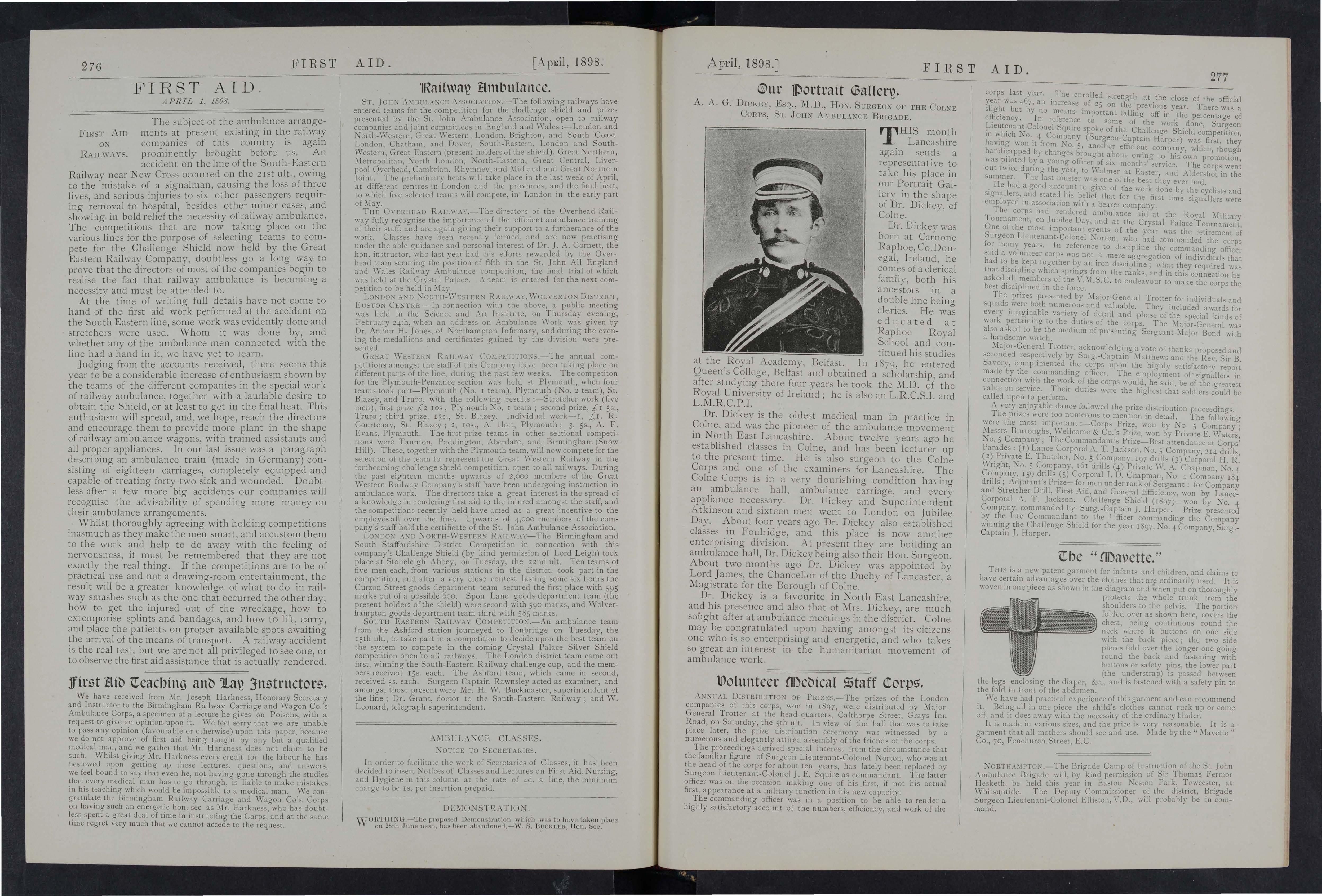 DARLTNGTON .-PR FS EKTAT I001 OF CERTIFICATES, &c., BANK Top STATfO., (N.F.R Sunday afternoon,. June ql.h, _ a atlended meeting of j\ .E.R employes h eld 111 the geneIal room, on tbe occasion of the pre sen tatlO.n by Lady Dale, of 20 filst and IS second certifica te s, and one o the ill the class recenLlv exam ined hy Dr. Ellerton of The c'lair was occupied by T. H. Ellis, Esq., Pa ssenge r SuperIntendent, wh o was s upp orLed hy Sir and Lady Dale, V. Rave.n, Esq., and l\frs. Raven, Dr. Middl em ISS (class In s tru cto r) Mr s EllIs, &c. Chairman said h e 100J.;ed upon the a mbulance movement as a splendId sia n of the concern a man [elt for hi s fellow in t h e c ri s is o f a nee? (Hear, hear). He was glad to ha\'e the opportunity of expressIng hIS appreciation of the Association twas r.ight and proper the railway compa ny sh ou ld hav.e to .thelr emplo)'es more Indu cement to enable them to acquIre IIlform atJO n ofthe work, and it was gratifying to rElcogni se the greater 1I1terest dIsplayed by the men than wa s formerly the case. (Hear, hear). He sure n o o ne wou ld be m ore pleased to n ote the than the.lr lo ca l director, whose pre se n ce was b1J( one more. IndI ca tIon o.f the .mter est Sir Da vid Dale took in e\'ery movement whIch had for Its object the mora and intellectual advancement of rail\\'aymen in genera l, and he believed of the Darlington men in particular (He:!.r, .Out of a class membership of 37, no than 36 wer e to a fa ct whi ch testified to the patience and skill of (Dr. Middlemi ss) Quite recent'y they had had a splendId ?bJectlesson on the utility of ambulance tra ining in the case of Yrr. AllIson, SIgnalman, Harp erley, (Applause). Lady Dale then formally presented t.he ce rtificates and medallion afterwhich she also p res e nt ed t o Dr.M Iddleml Es on behalf of the memb'ers of the class, a handsome silver mounted ebony walking stick, bearing the. devi.ce St. John Ambul a nce Association, as also the followmg In SC rIptIOn :-Presented by the m embe r s o f the Darlington Bank Top Class, N.E.R. Centre, to Geo. Middlemi ss, Esq., M.D., Surg-eon Major, In structo r ?f the class, June, 1896 Dr. Middlemiss in acknowledgment of the glft s:ud he thought the work they had performed during the past few yea.rs had been highly s uccessfu l. (Hear, hear). He was th at If called upon to attend anyone s uffering from sudden Illnes s or the Bank T op men would not disgrace either themselves or then: teacher. (A pplause). Mr. Garrett, the district secretary, then gave a bnef ?utlme of the work of the district s in ce the formation of the Centre, slatmg, as a proof of the ad\'ancement made , tb a about two months ago they had sup plied upward s of 1,200 books and bandages to new members on the North Eastern system. He believed the Nort8 EClste rn was the only railway company in the United l>.ingdom with an ambulance centre of the St. John Association of its own (hear, hear), and he thought that did great honour to the men who had been instrum ental in the ,,"ork forward, a nd he trusted all would always work to keep (hIS J?rI.mary position. Lo ca lly they bad to thank Mr. Ra\'en and Mr. EllIS for much valuable assistance. (Hear, he ar) The company then adjourned to the booking hall where various demon st rations o f first aid were given by the member s. On returning Mr. Garrett moved a of t.o Lady D a le for presenting the certificates, &c., and to SIr DaVId for bls attendan ce that afternoon. P. C. Alcock very ably seconded, remarkmg that out of I 3 orth Eastern polieeman stationed at Darlington, seven held first certifi:ates, one a second certificate, and two held medallions. (Hear,hear ). The motion was enthusiastically carried. Lady Dale in reply said she wa s sure [Jone co uld be doing a more useful work than that of ambulance, though she hop ed they might never have to put their knowledg to u se. But the possession of that knowledge wou ld give them greater confidence in cases of accident, and pas>engers had gooj reason to be thankful to know that those with whom they were travelling were a':lle to give help which might even mean the saving of life. It had been a great pleasure to her to be present at that gathering. (Hear, hear.) Sir David Dale, who was warmly applauded, said that what they had seen and heard that afternoon was a striking illustration of the well-known fact that a special characteristic of this age, more especially amongst the wh te races of the world, was tenderness for human suffering. (He ll', hear.) Th is of course was exhibited not only in those very noble ;nstitutions of various kinds which were so