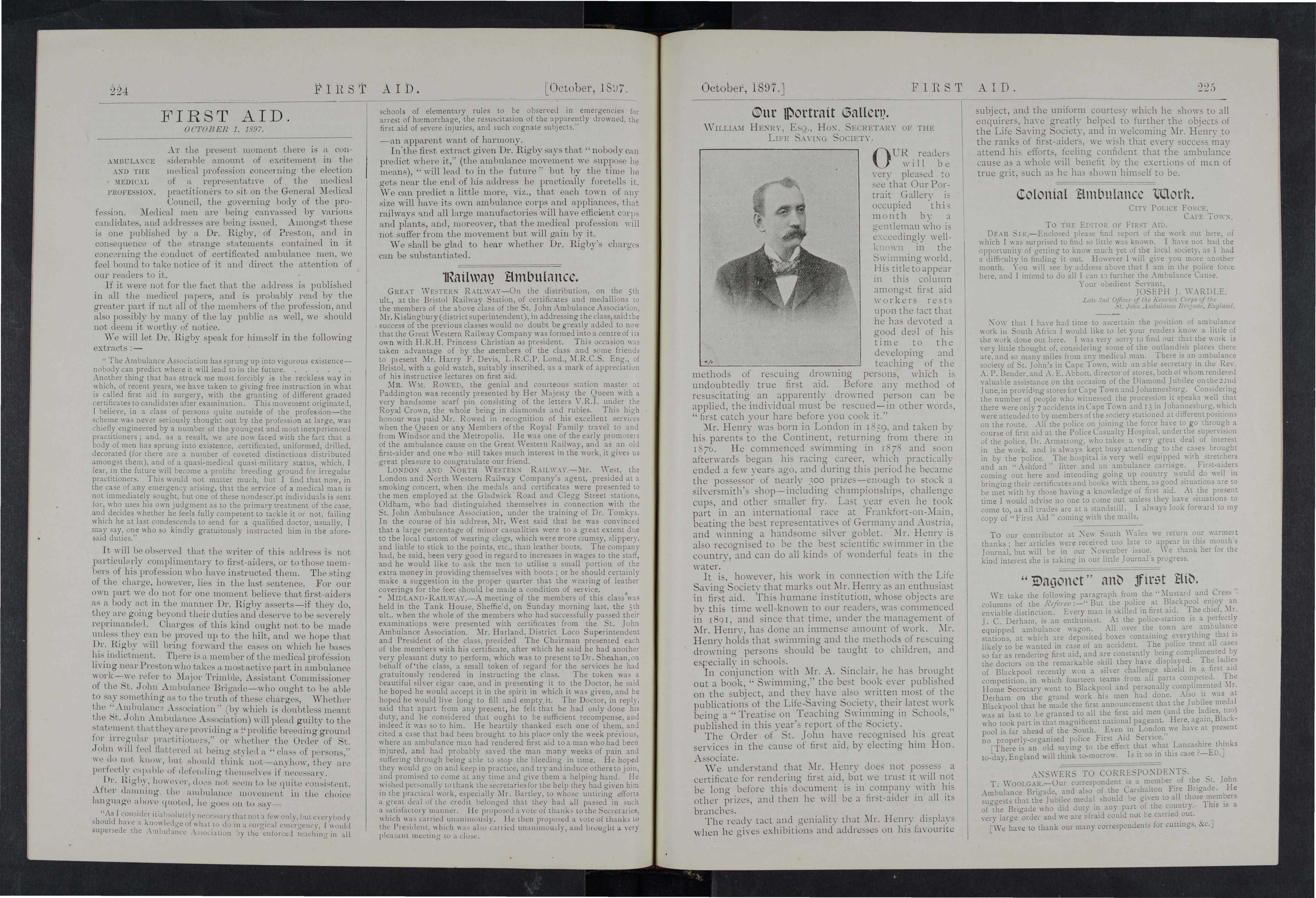 walking sticks. '\1r. Harrison then asked the Mayoress to make another presentation, he said that the non-commissioned officers were declared to be the back bone of the British Army, and the same beld g ood of the St. John Ambulance Brigade, and that if every superintendent was as well backed up as he was by the supernumerary officers (anything, he said, but supernumerary to him) e\'ery diyision would be in a very flourishing state. Foremost among the non-coms. oi this division was 1\1r. L. Dobinson, the secretary, who worked heart and soul [or the benefit of the division, doing an immense amount of hard work for a corps which had no large mine or factory at its back. He tberefore had to ask the l\layoress to pre sent to Mr. Dobinsol1 a gold medallion as a token of the esteem in which that gentleman was held by all the members of the division, and of their appreciation of the hard and persevering work he had done for the good of that body. Mr. DJbinson in reply said that he was taken quite by surprise, as the secret had been wel! kept, and that until Mr. Harrison mentioned his name he had no idea that any such scheme \\as afoot. He acknowledged that :'IIr. Harrison had paid him off in bis own coin, as he was the mover of a similar surprise on the superintendent some three years ago. He admitted that he had "worked hard for the division but it was for the loye of the cause, and their kind appreciation of it, as showed by their presentation that night, would encourage bim in further exertion for the good of the bl·igade Th e Mayor tben asked Mr. Davis, the surgeon instructor of the division and lecturer for the classes, to accept, on behalf of the mem bers of the classes, a hand camera, as a mark of their appreciation of the manner in wbich he had instructed them. Hi s worship sa id that in his enthusiasm for ambulance work i\f1'. Dn.vis had instructed two classes in Gatesbead Fell, one at Sheriff Hill (High Fell) on the Thur sday, the lecture on the following Tuesday at Low Fell. On receiving the camera from the hands of the Ma.>:oress, Mr Davis thanked the classes for their present, alld Spoke senously and enrnestly on the importance of ambulan:Je work to all. Mr. son moved a vote of thanks to the and 1Iayoress for theIr attendance and assistance in s u ch inclement weather, and also to the friends who had come forward to help with music and recitations, and to the firm who had so kindly lent the piano. Speaking of those who ought to go through an amb u lance course, he said it ought to be compulsory on n.ll verg-ers., chape l keepers, and door at .all places of public resort, and also on a ll school teachers ;. l11stancmg. cases where the sufferer had been attended by fellow-worshIppers, and m one instan ce by a school boy, whilst those who ought to baye rendered fir.st aid stood by suggesting inappropriate treatment. The .\In.y or m responding said that since he took office tbe .\layoress had four made public presenta tions, and three of them were certlfi;ates n.nd medallions to ambulance men: to the Gateshead poltce, the ::'Iorth Eastern Railway men, and now to the Gateshead Fell classes He was glad to tell the a udience that 80 per cent. of the Borough polIce force were trained in ambulance work under the St. John _\.mbulance ASSOCI" ation, and that, in his opinion, the possession of a St. J ohn Ambulance certificn.te should be a condition of empLOyment. As the and 1\layoress were the whole o f the members of the dIVISIon \\bo were present, sprang to their feet at the word of command and took farewell of the municipal party by a general salute. As the. Mayor and Mayoress were obliged to leave early, the con:-ert was. fiDlshed under the presidency of the Rev. A. H. Patterson, Vicar of St. Helens, Low Fell, hon. chaplain to the division. The concert. l\'as somewhat prolonged by the introduction of an ambulance dlsplay- :.\1e ssrs. John S cott and J. Brown, from the Sheriff Hill class, a.nd Messrs R. Crearar and P. Smith, from Low Fell, all first yen.r men, doing yery neatly a series of bandaging under the of 1\11'. pavis. Four members of the dIVISIon, Messrs J. Hutt, J. h.lrk E. \\ Ilson, and 1\1. Pearson, under M r. Dobinson, the secretary, ga ve an illustr.ation of moving a man with a broken thig-h, unde: the rules of the" Bngn.de Drill Manual,".and very smart, yet.wlthal, accurate and treatment of theIr patIent, was much admIred by the audIence ;:'IIotwithstandin a that the weather was extremely wet and unpleamnt, there was a attendance, and it is hoped that a.s the concert was for the benefit of the di \'ision, a good add iti on will be to tbelr stock of ambulance requisites.-The Division has Stlstamed a senous loss by the death of the Re\,. J. W. iIooper, Rector of Gateshead Fdl, which took placp. on tl:e 6th ult. at the age of 70. '\[r. Hooper has ever been a warm supporter of the ambulance cause, and on e\'ery Hospital Sunday since the present series of classes were .commenced, when preaching for the loca l medical has not. faded to command a co urse of ambulance training to hiS congregatIOn. Alt? ough age and bodily infirmity prevented him tak ing. an .active part. m the movement, he was present at ne arly every meetlng Jl1 the Fell 111 connection with it, and by presence and word encouraged.the movement as far as it lay in his power watchir.g a.ls o great ll1te:est last year the drills and inspections of the local diVISIons of the Bngade. After drill on the 9th ult. the m embers of the sent a vote of. conde:lence to l\lrs. Hooper and the family of the lute rector lD theIr bereavement.