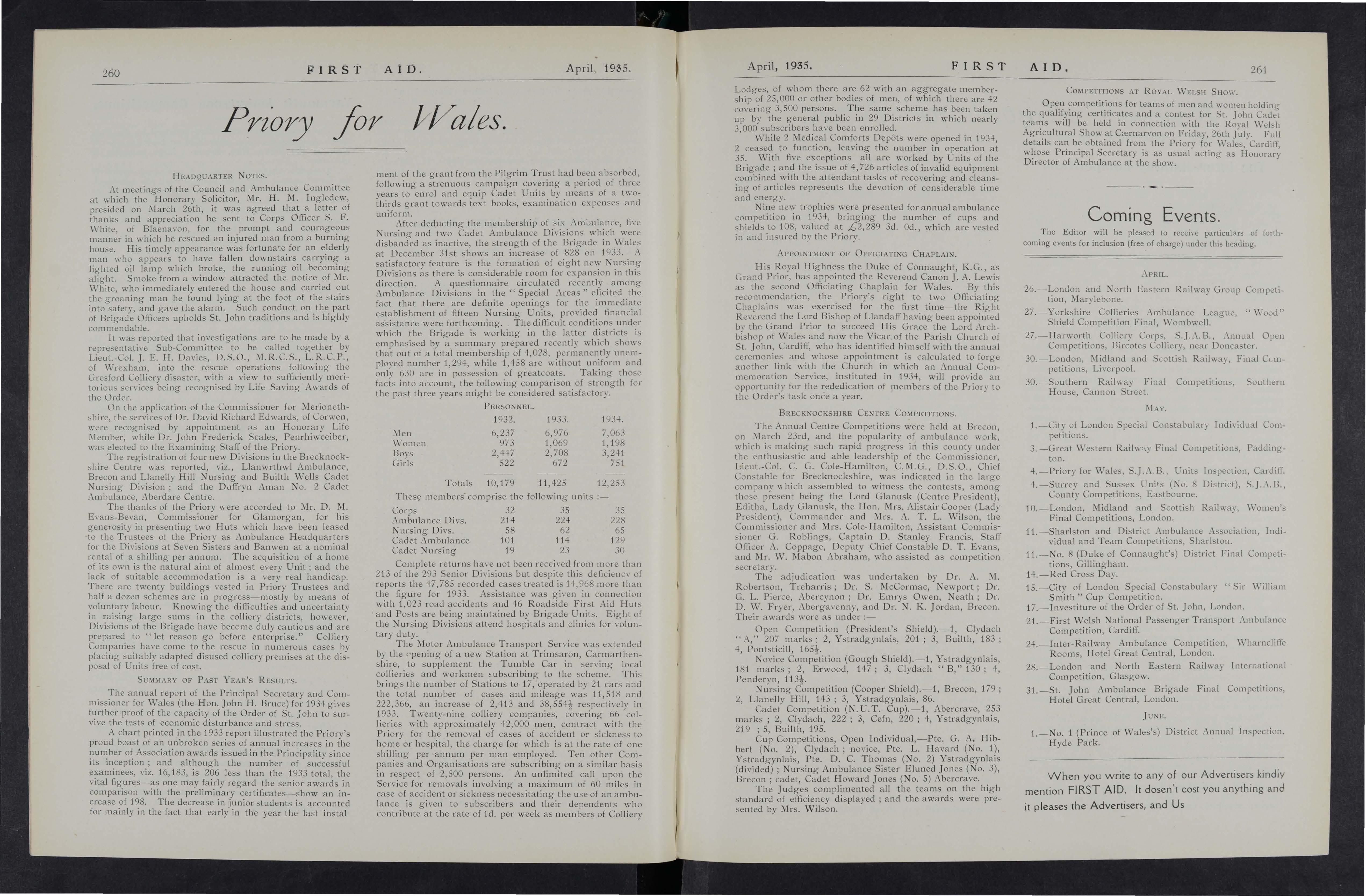 First Aid, etc., from the Bible, 224. Laymen Lecturers, 183, 287. National Competitions, 18. National Road Transport Ambulance, 40. " " Competition, 74, 99. Our Visitors, 99, 140.
