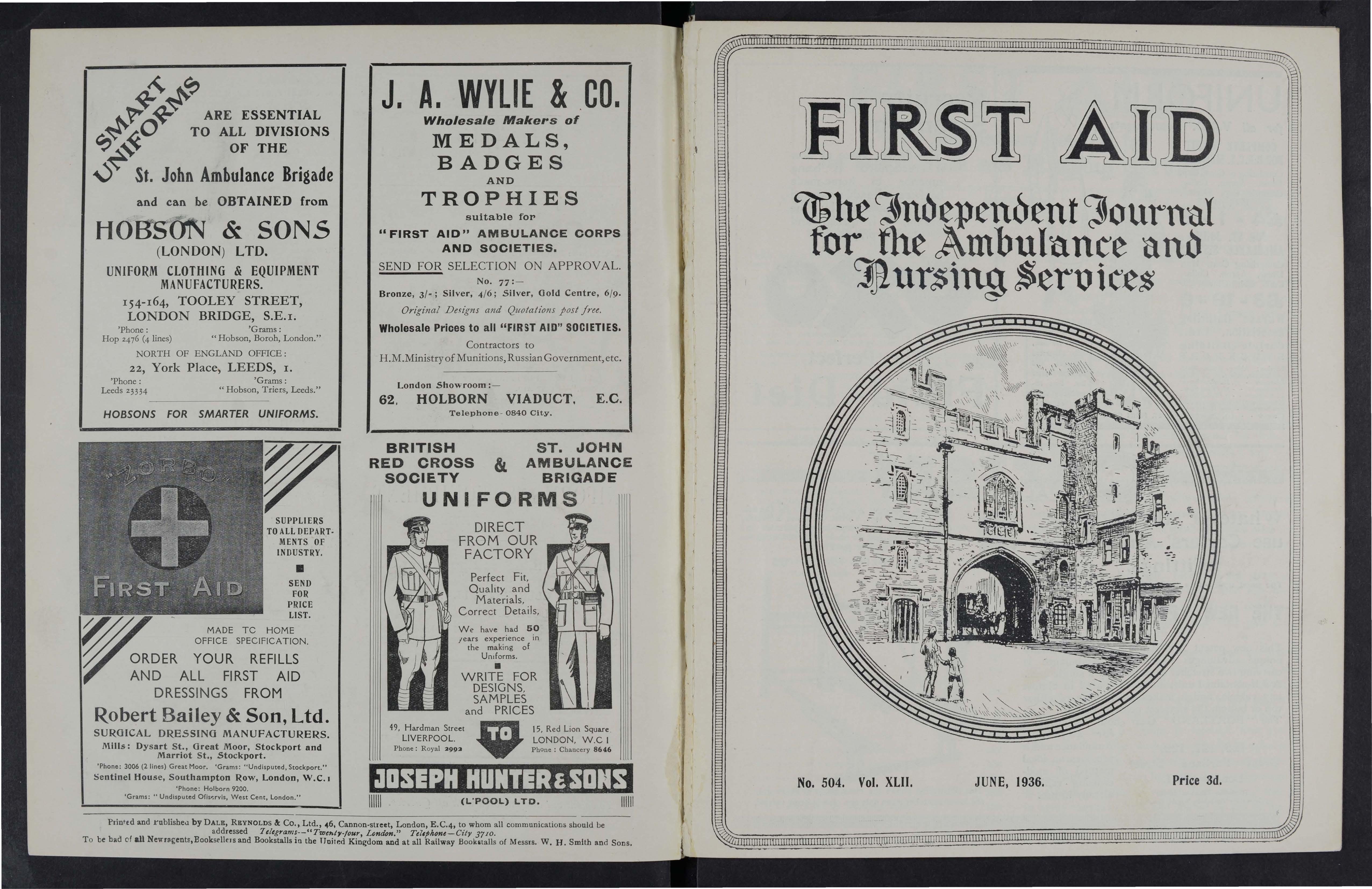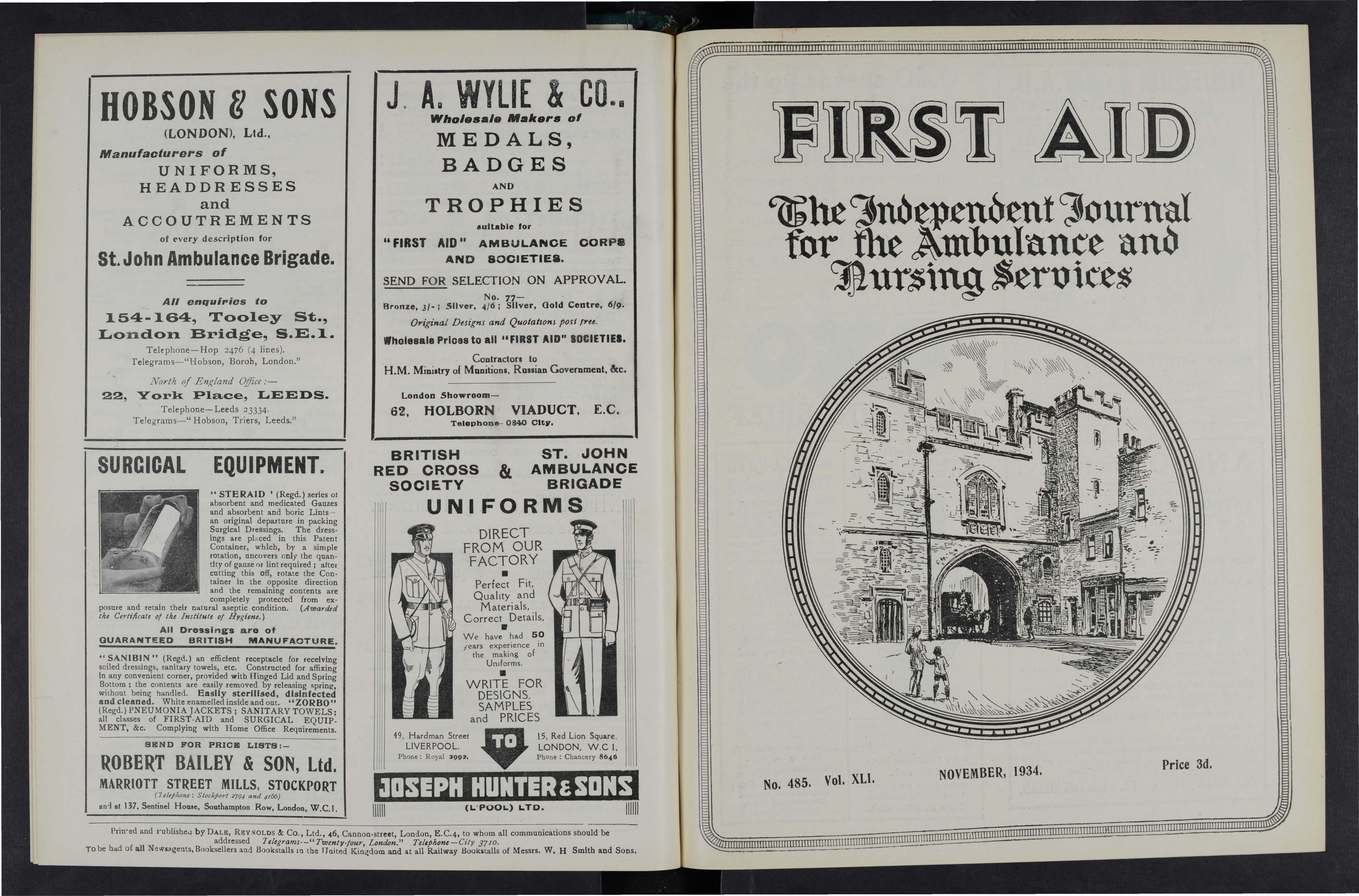 CO. Wholesale Make,.s of MEDALS, BADGES AND TROPHIES suitable fol' U FIRST AID" AMBULANCE CORPS AND SOCIETIES. SEND FOR SELECTION ON APPROVAL. No. 77:Bronze, 3/- ; Silver, 4/6; Silver, Gold Centre, 6/9. Orz'rinal Destins and QUtJtations post free. Wholesale Prices to all "FIRST AID" SOCIETIES. Contractors to H.M.Ministry of Munitions, Russian Government, etc. London Showroom:62, HOLBORN VIADUCT, E.C. Telephone- 0840 City. BRITISH ST. JOHN RED CROSS & AMBULANCE SOCIE.TY BRIGADE UNIFORMS DIRECl FROM OUR FACTORY Perfect Fit, Qualtty and Materials, Correct Details , We have had 50 lears experience in the making of Uniforms. • WRITE FOR DESIGNS, SAMPLES and PRICES 19, Hardman Street • 15, Red Lion Square LIVERPOOL. LONDON, w .e 1 Phone: Royal 2992 PhOne: Chancery 8646 Fl. H4 :I: II I: i i 4;113 11$1 111111 (L'POOL) LTD. 111111 Printed and .t'ublisheu by DALE, REYNOLDS &: CO., Ltd., 46, Cannon-street, Lond(i)D, E.C.4, to whom all communications should be addressed 'I tletrams--CCTwe'lt,,-tour, London." Tel,;kone-City 37 IO • T o,. be bad of all Nfwl3gents, Booksellers and Bookstalls in the United Kingdom and at all Railway Bookstalls of Messrs. W. H. Smith and SODS.