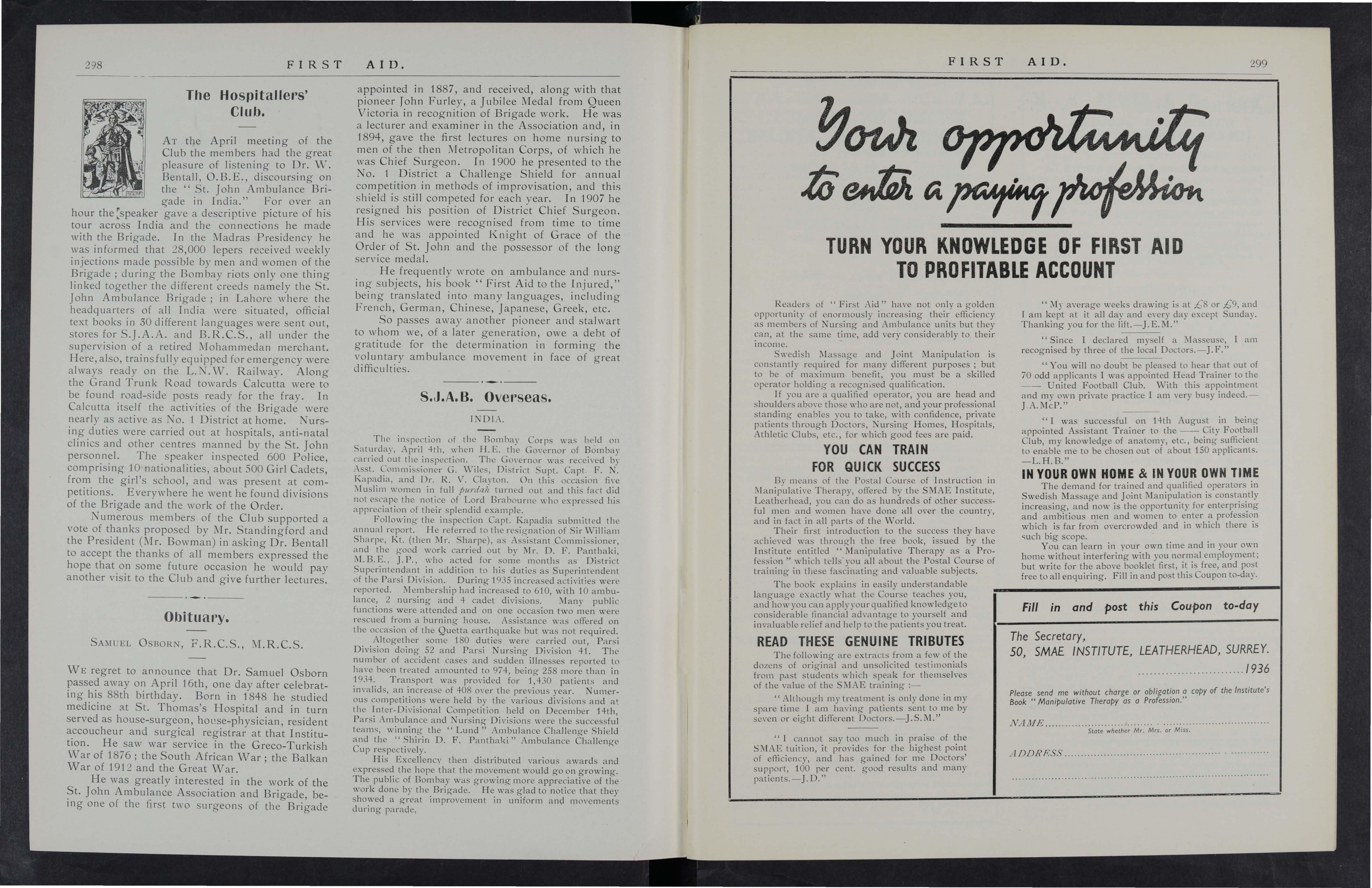 Poison in Horse Chestnut Twigs, 43. Saved from Burning House, 145. Ambulance Sunday at Southampton, 38. Appreciations of the S.JAB., 326. Arnold Watches, 110, 211.