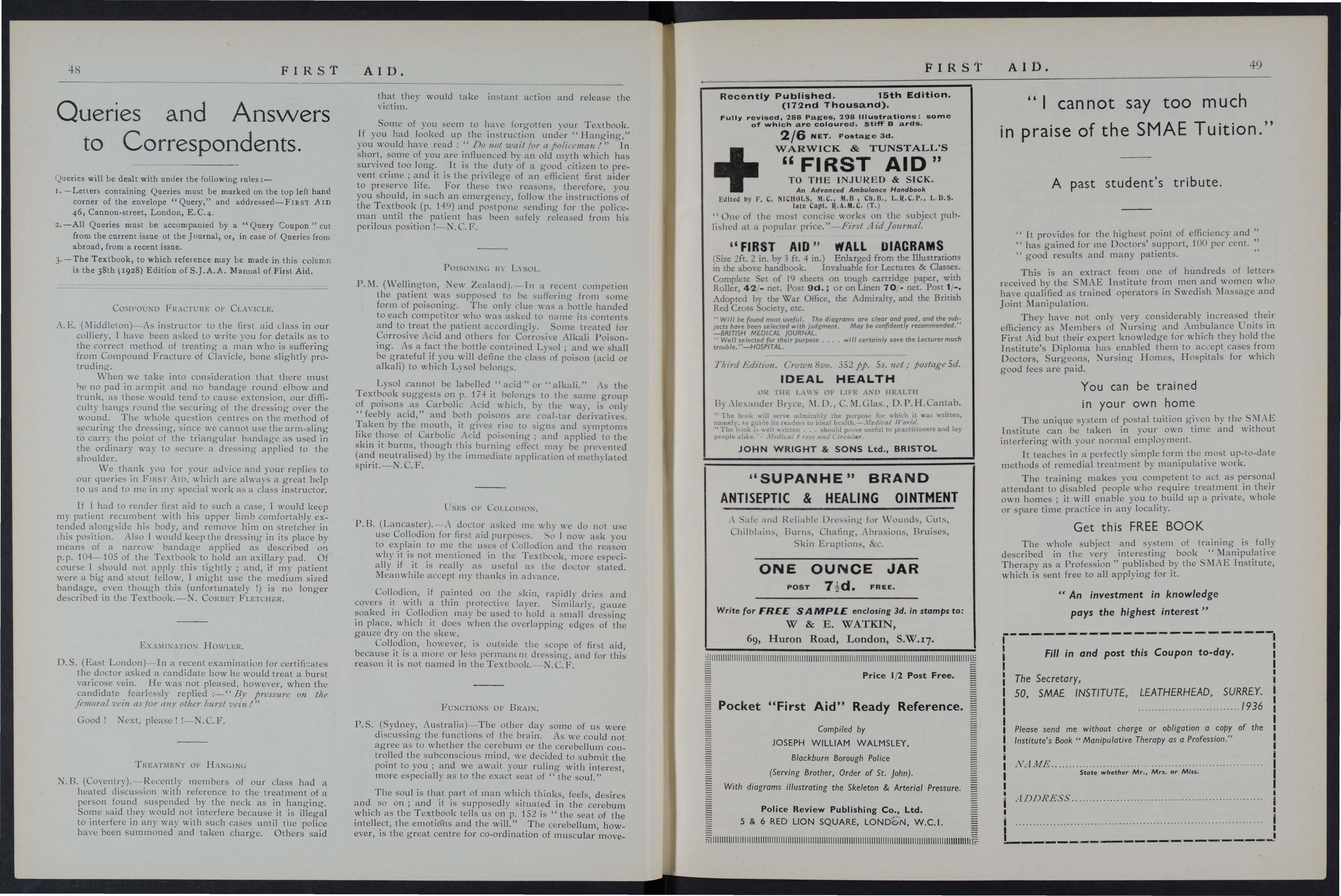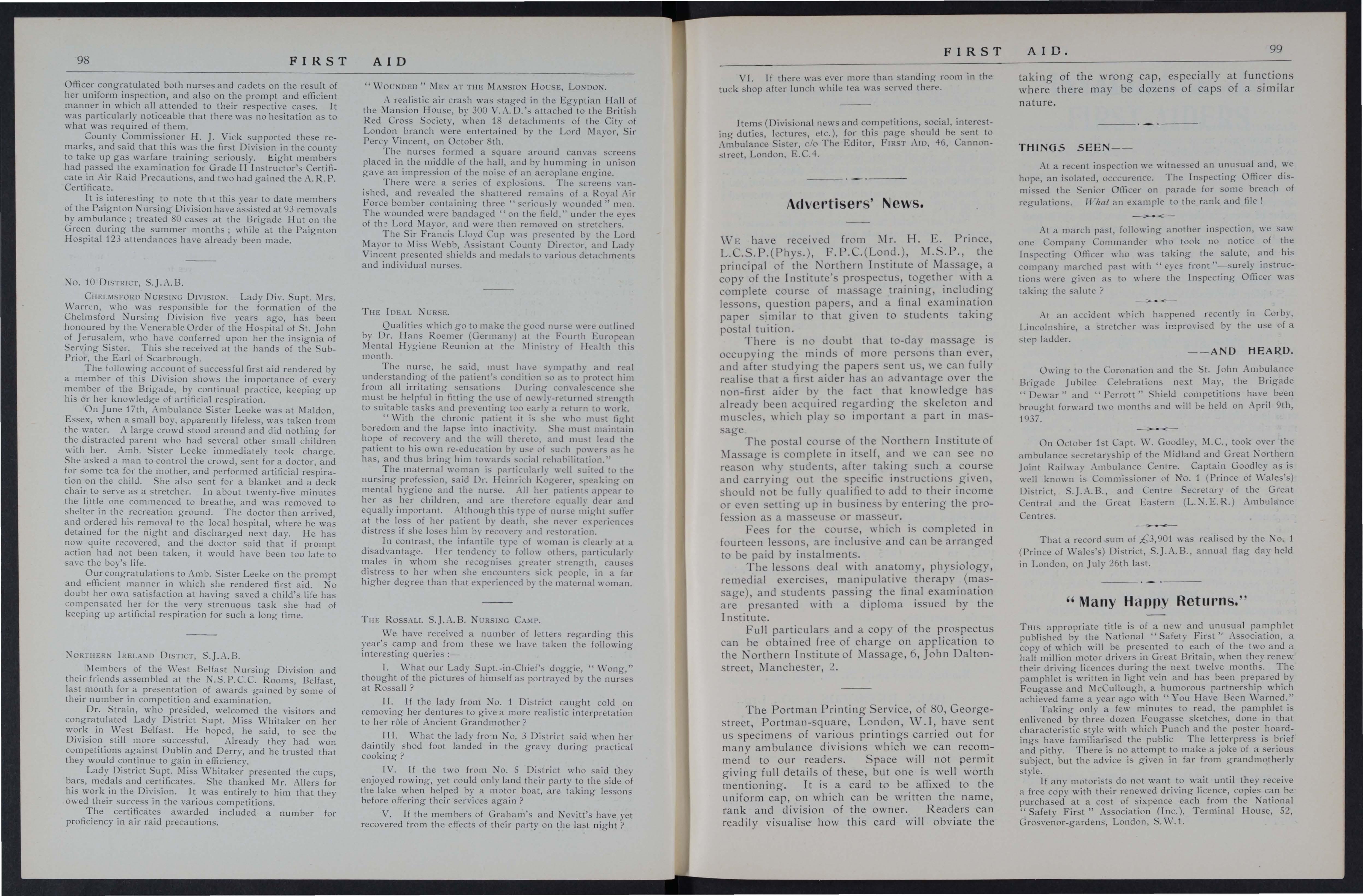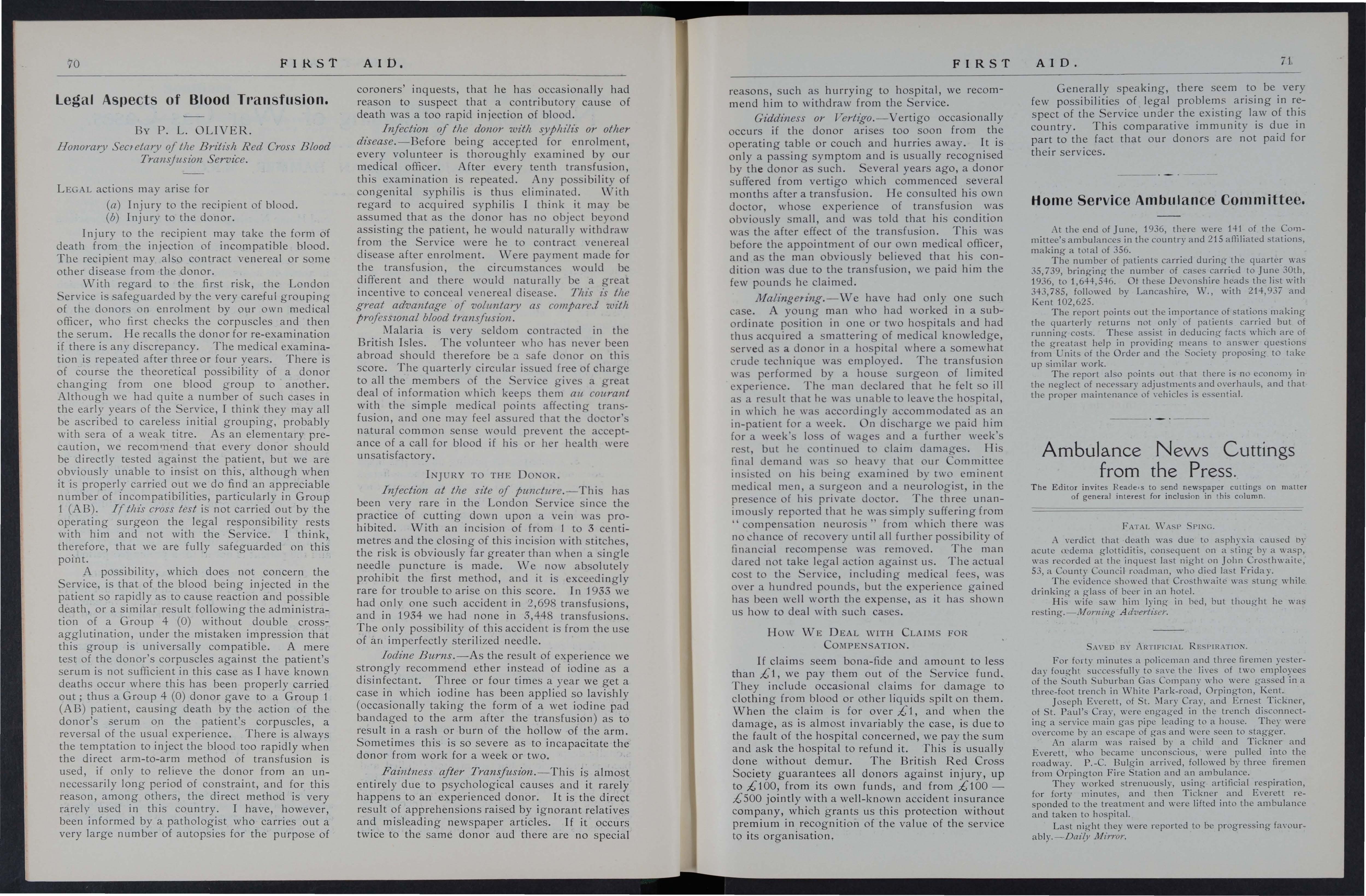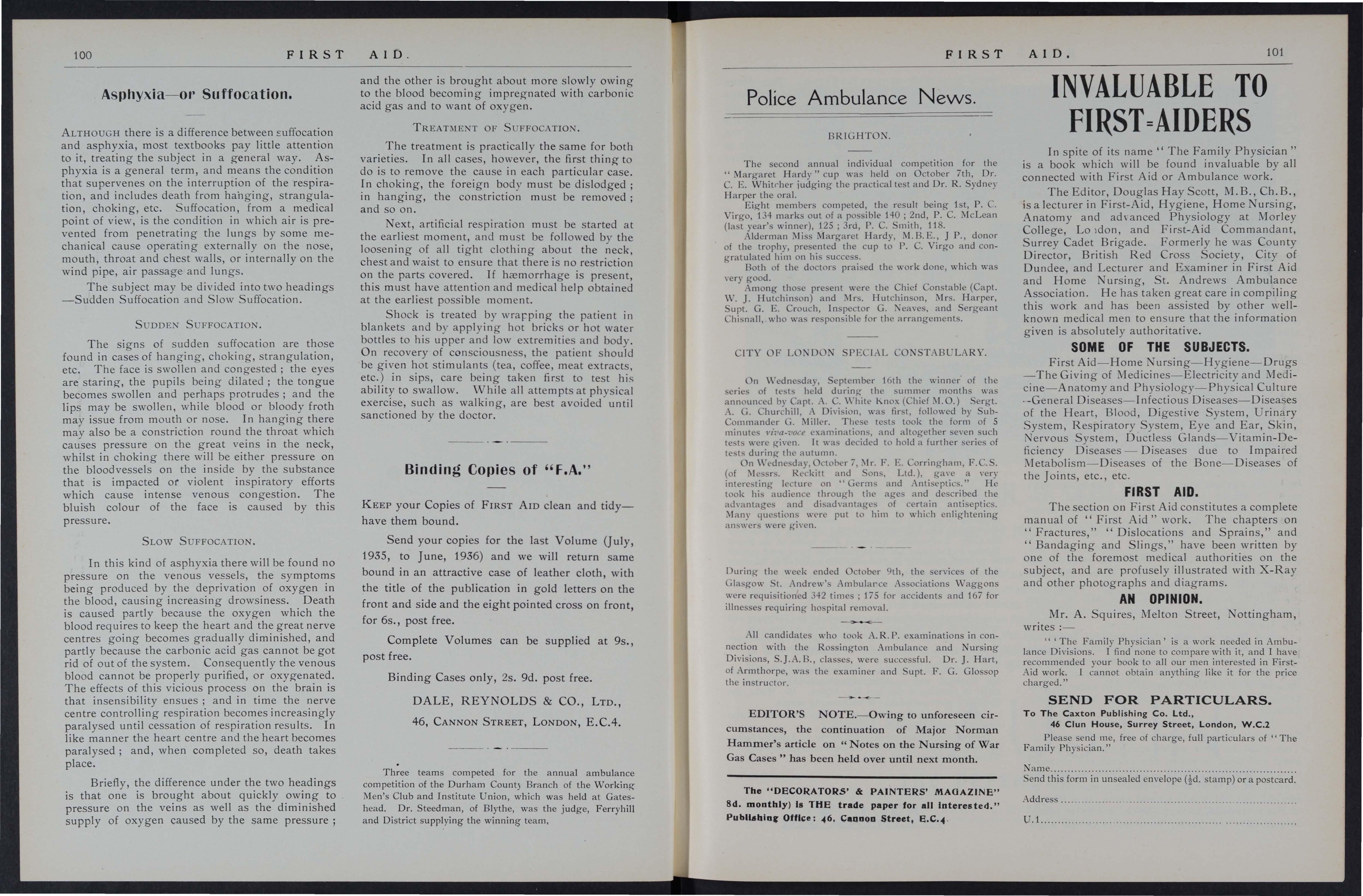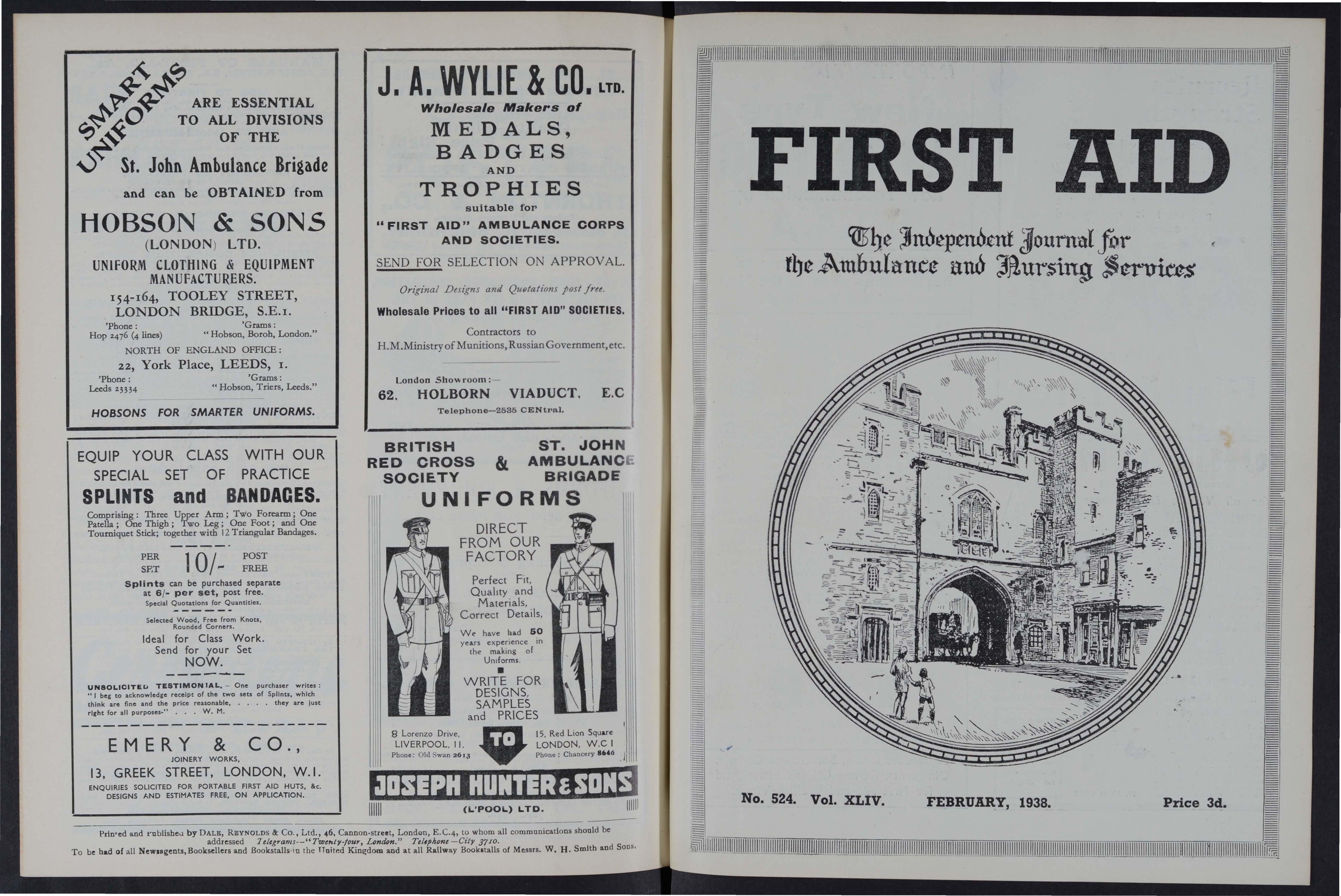 FIRST AID The Independent Journal for the Ambulance and Nursing Services. VOLUME XLIII. (No. 505, July, 193 6, to No 5 16 , June, 1937). LONDON: DALE, REYI\OLDS & CO., LTD., 46, CANNON STREET, E.C 4.