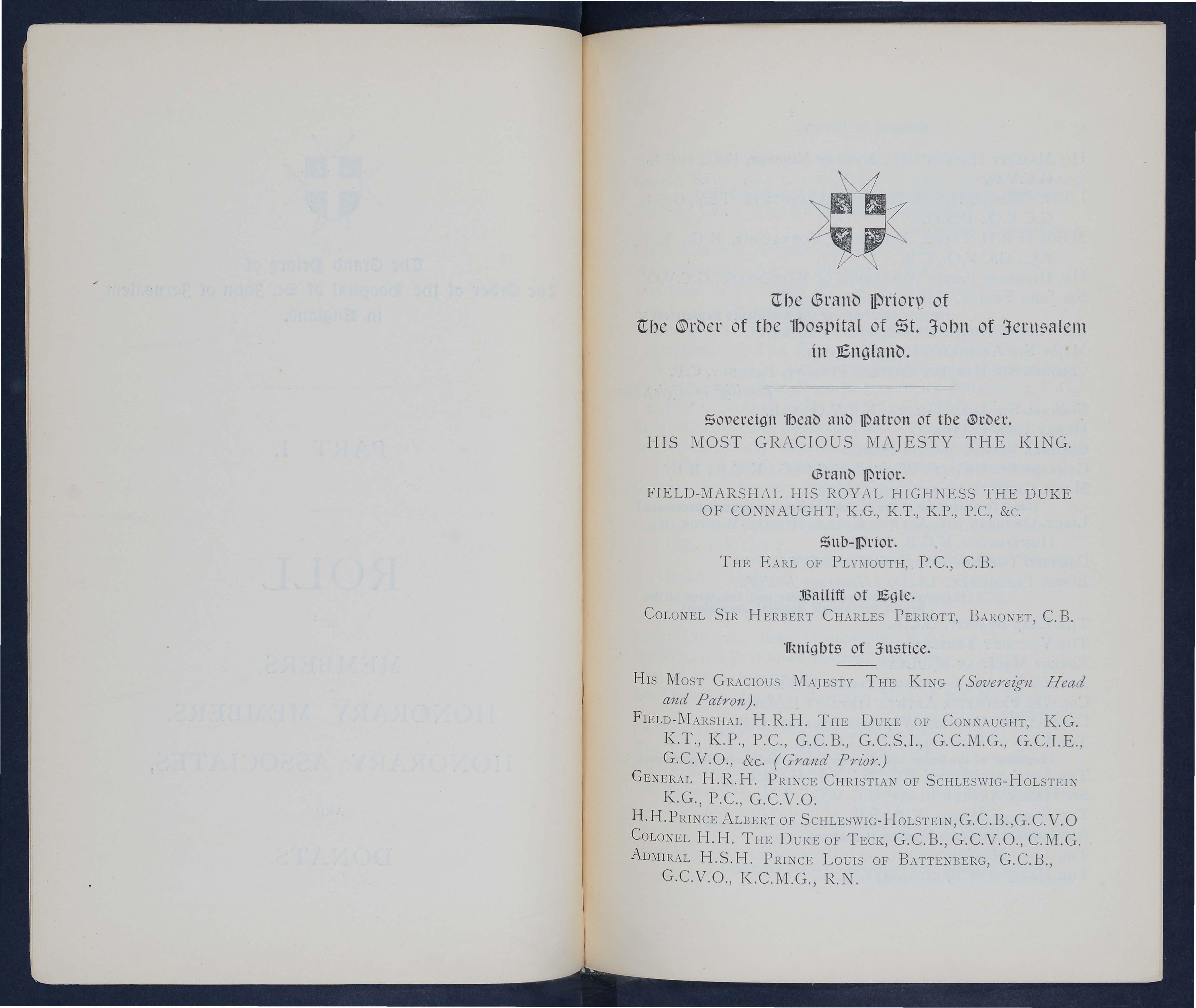 PART I I.-(a) Roll of Lord Priors and Grand Priors from 1831 to 1915