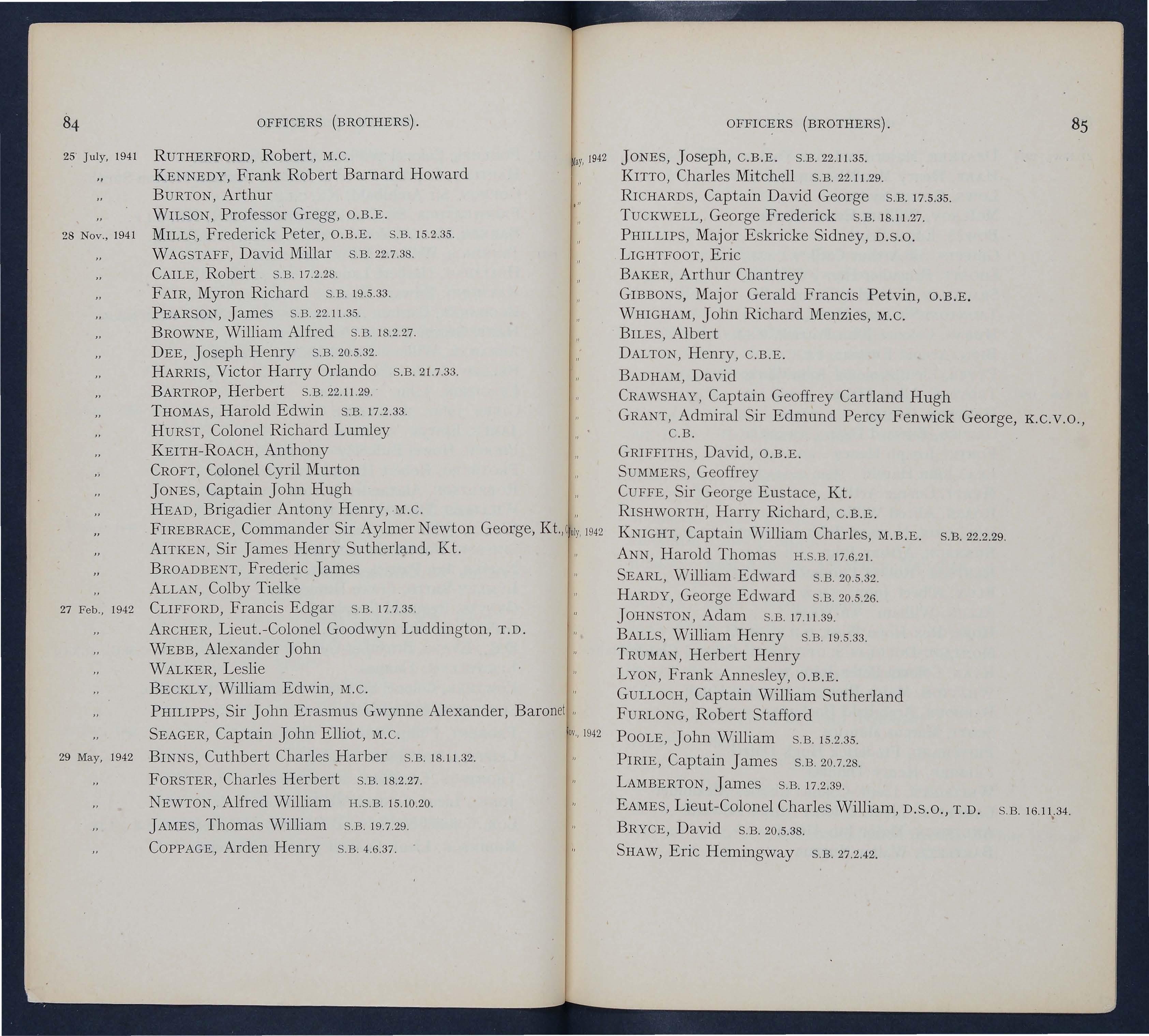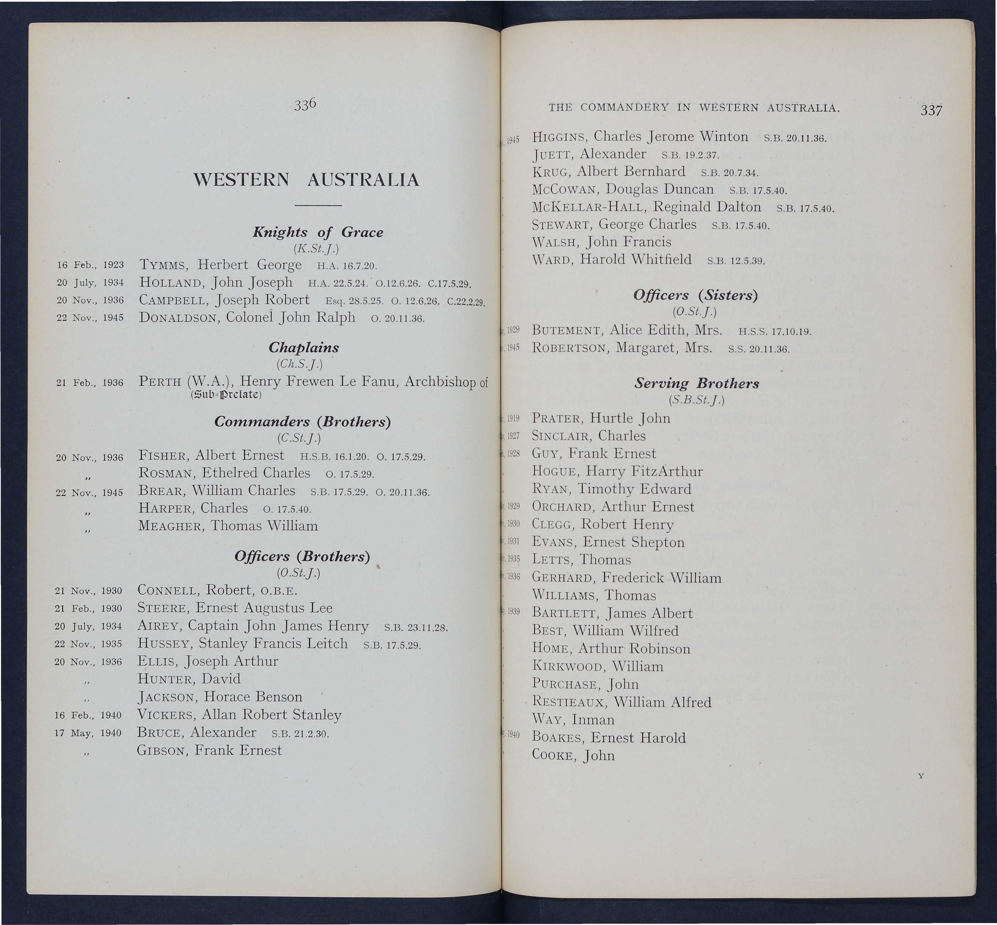 For purposes of convenience the Sub-Chaplains arc g roup ed se parat ely after the list of Officers (Brothers)} but they rank with the Officer (Broth ers) for senior it y in the Order in accorqance with th e dat es of their appointment or promotion. In the same mann er the Ass istan t Chaplains are grouped separately after the list of Se-rvin g Brothers.