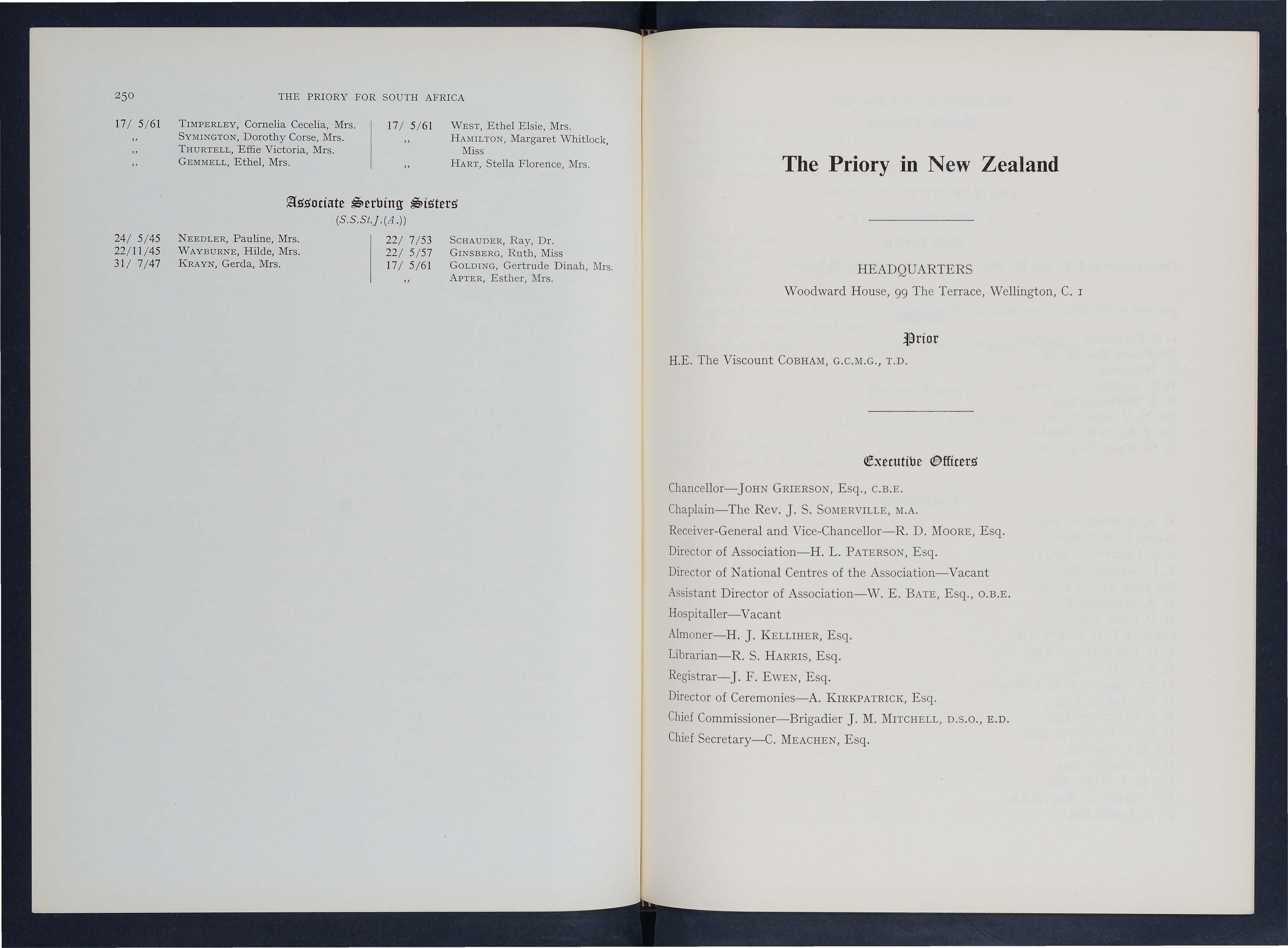 Lieut.-General THE LORD FREYBERG, V.C., G.C .M .G., K.C.B., K.B.E., D.S.O. (representative of the Priory in New Zealand).