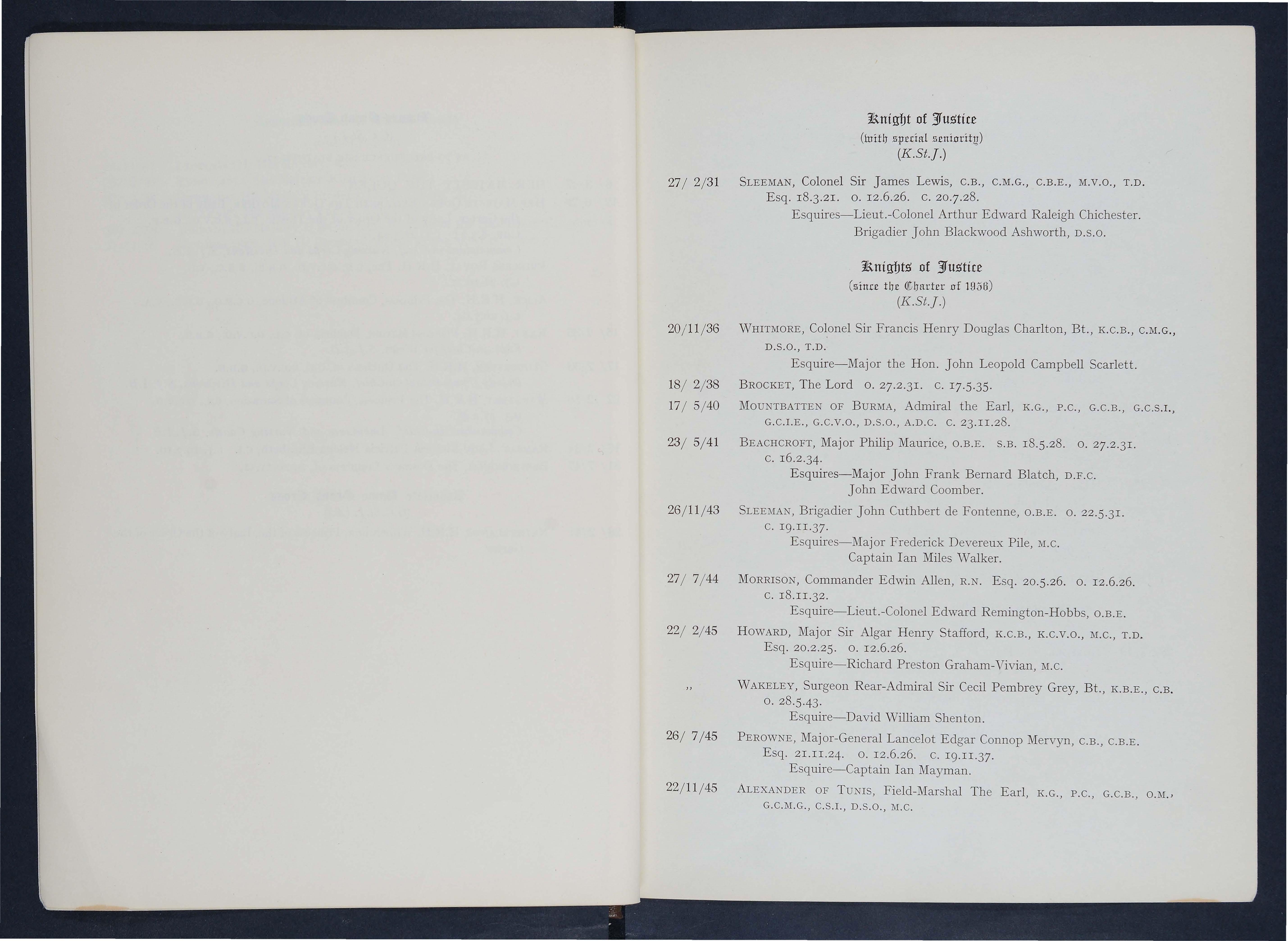 Owing to war and po s t-war condition s th e la st two i ss u es of th e Roll of th e Ord e r had each to app e ar , r eg rettably, at an interval of t en ye ar s aft er th e publication of it s pr e d e c es sor. Happily it ha s b ee n found po ssibl e to produc e th e pr ese nt R oll within fi ve y e ar s of that of I957·