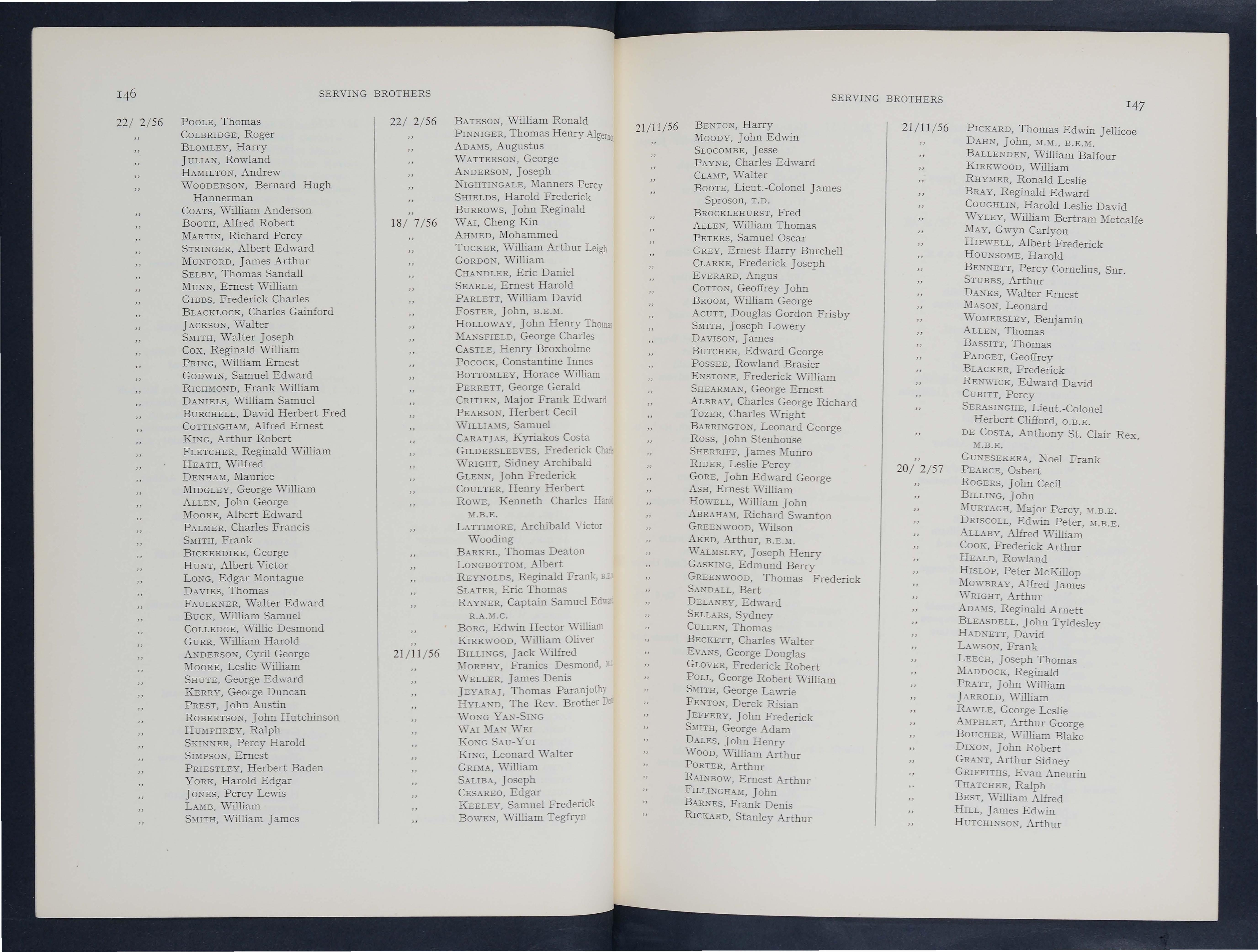 It is my pl easant duty to e xpr es s my w a rm thanks and appr e ciation to Mr. J. G. Silv er, B. E .M., th e Assistant S e cr etary of th e Ord er , and tho se oth e r m emb ers of th e perman ent staff who hav e collaborat e d with m e in th e m eticulou s ta s k of bringin g th e Roll of the Ord er up to dat e 30th September, 1961.